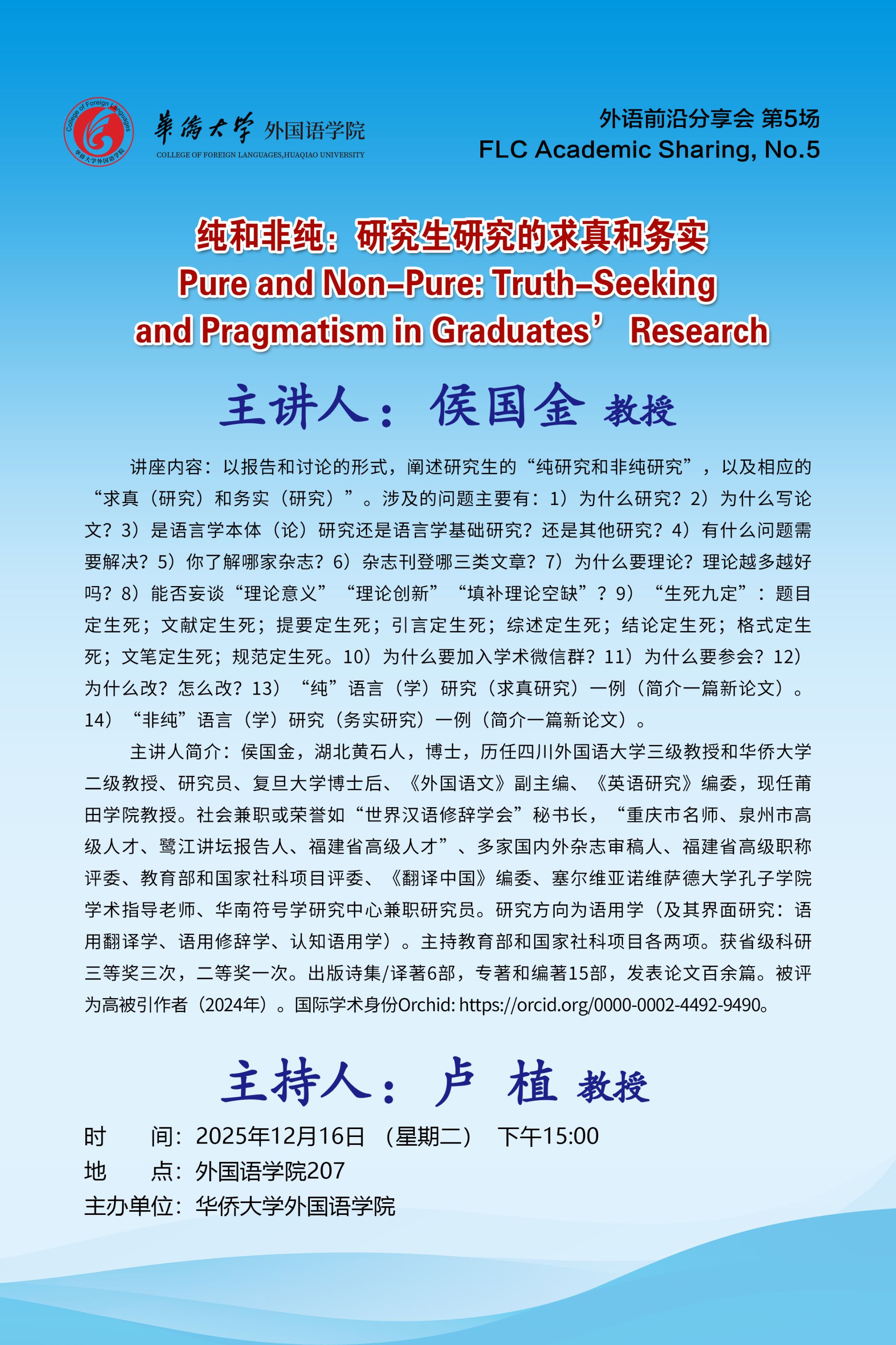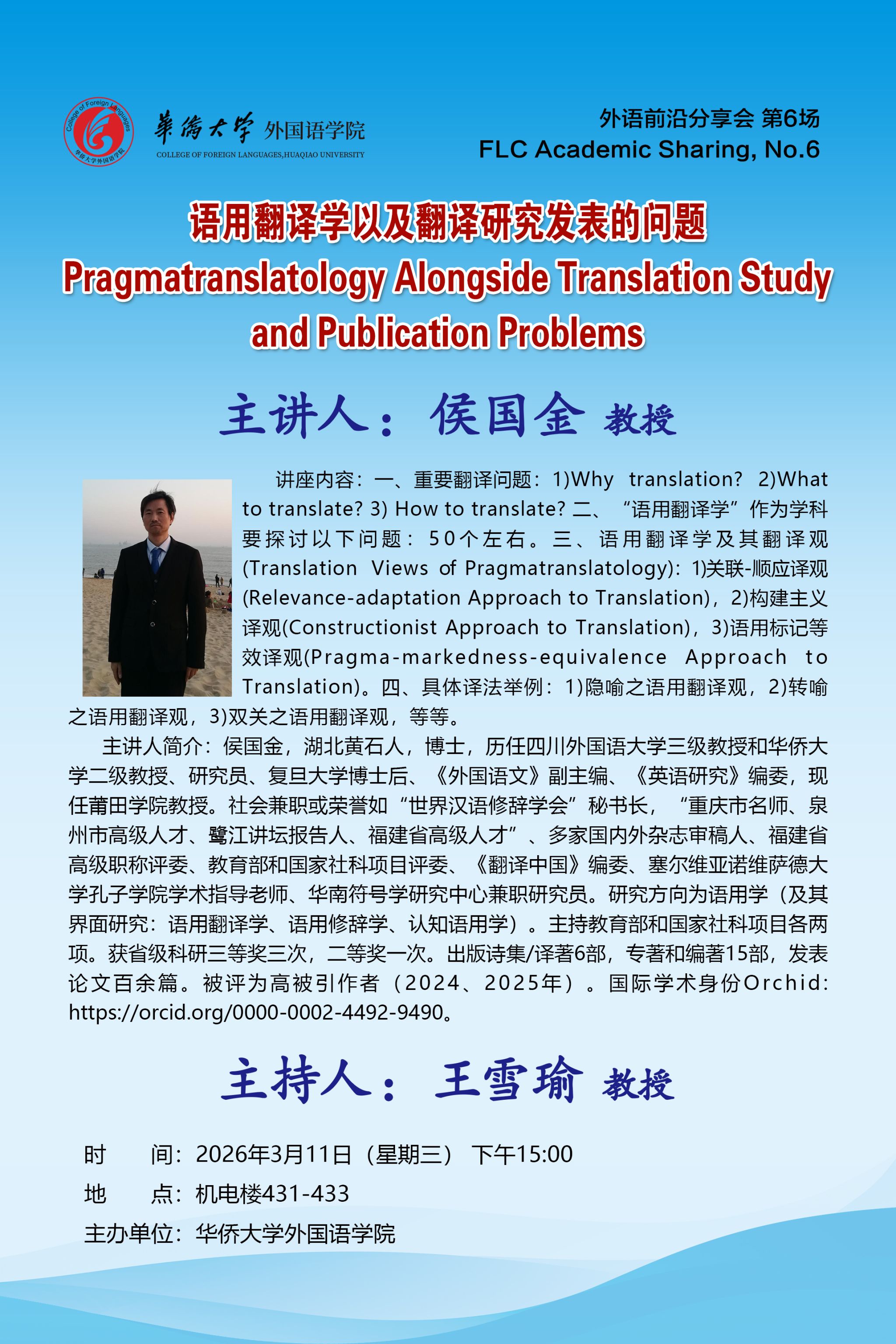 2026-03-272026年3月17日,永利23411集团“外语论坛2026年第4讲”在祖杭楼203开讲。南开大学张文忠教授应邀作题为“Constructing an Ecological Virtual Community for EFL Teacher Development: A Case Study of the RightOempower English Teaching Team”的学术讲座。讲座由永利23411集团卢植教授主持,学院师生到场聆听学习。主讲人简介:张文忠教授,南开大学博士生导师,教育部“教学科研一体化外语教学研究虚拟教研室”负责人,...