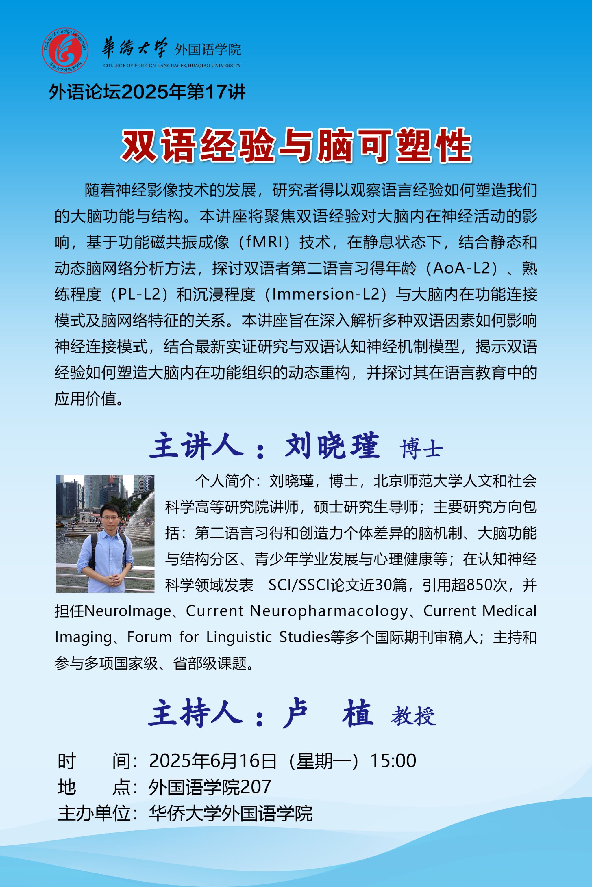 2025-072025年9月26日下午15:00,外语论坛2025年第25讲在永利23411集团207教室顺利开展。本次讲座特邀中南财经政法大学三级教授、硕士生导师王革担任主讲,永利23411集团张红教授主持,众多师生齐聚一堂,共探中国方言保护与传播的深层议题。王革教授学术成果丰硕,现任中国英汉语比较研究会多语能力与多语教育专业委员会常务副会长等职,在International Journal of Bilingual Education and Bilingualism(SSCI)等国内外期刊发表文章三十余篇,...