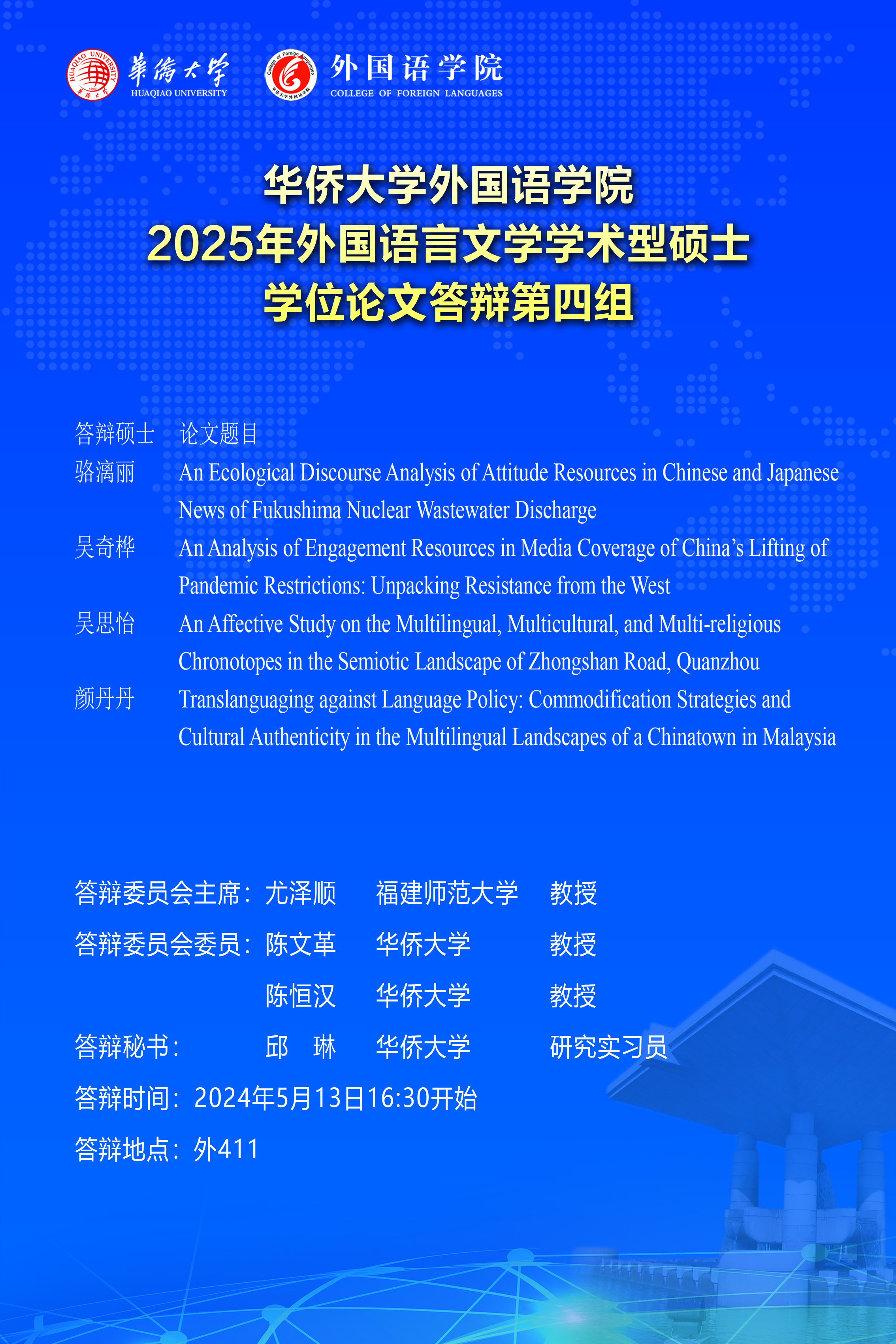 上一条:2025年外国语言文学学术型硕士学位论文答辩第三组