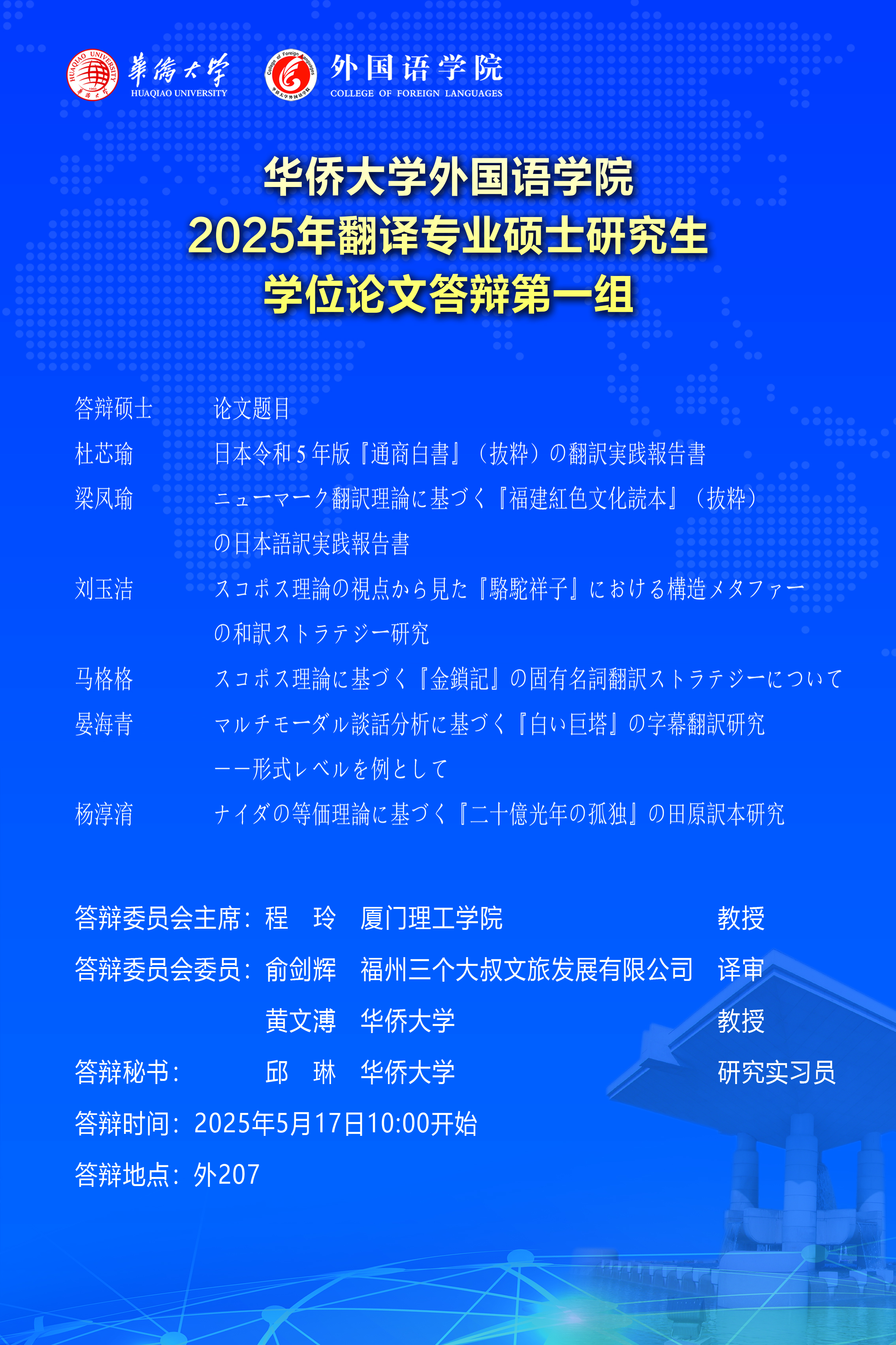 下一条:2025年外国语言文学学术型硕士学位论文答辩第二组