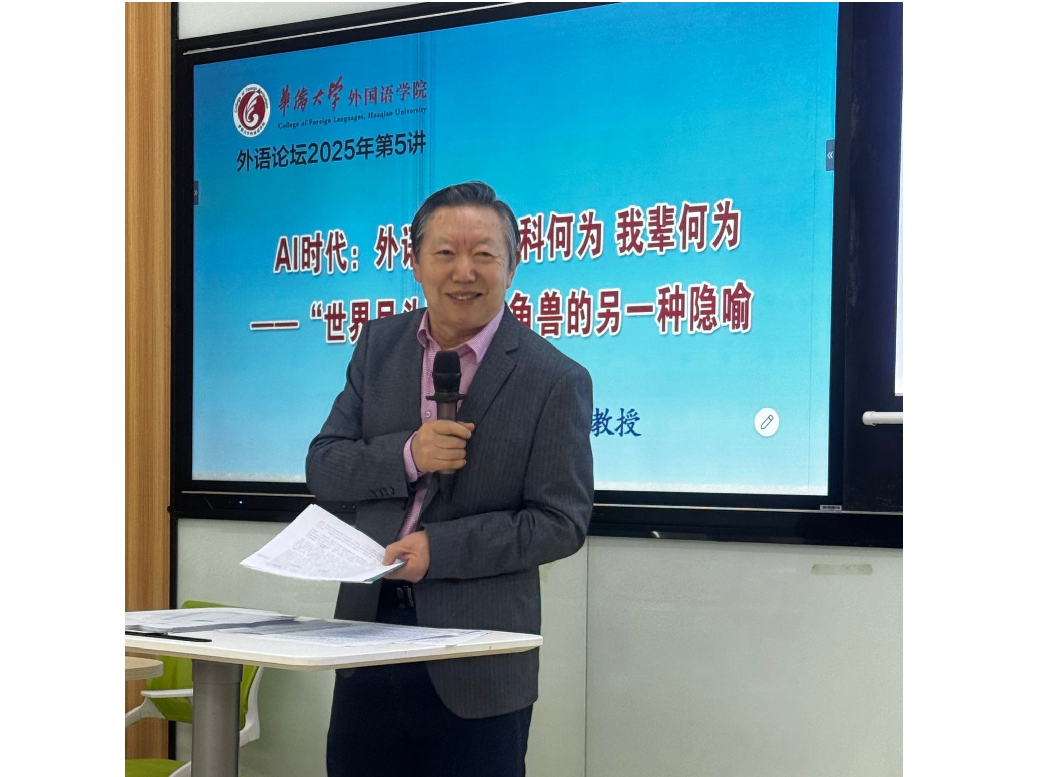 2025年3月25日下午,著名文学翻译家、散文家、中国海洋大学林少华教授,应邀为我院作题为《AI时代:外语何为 文科何为 我辈何为——"世界尽头"与独角兽的另一种隐喻》的学术讲座。本次讲座由永利23411集团主办,日语系黄文溥教授主持,学院师生百余人踊跃参加,现场气氛热烈,学术氛围浓厚。