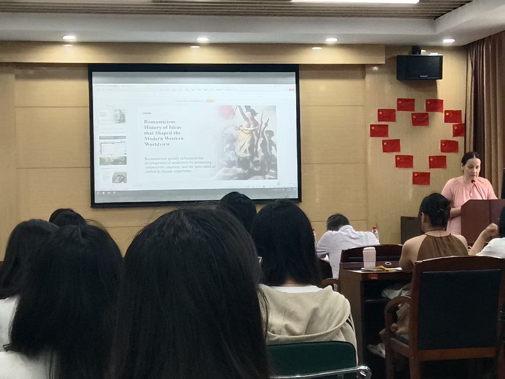 2025年6月4日下午,外语前沿分享会第3场暨yL23411永利集团青年教师学术沙龙第70期由Nataliia Morzhenkova教授作题为“Romanticism: History of Ideas that Shaped the Modern Western Worldview”的学术讲座。本次讲座由yL23411永利集团人事处和永利23411集团联合主办,杜志卿教授主持,学院师生踊跃参与,积极互动,气氛热烈。