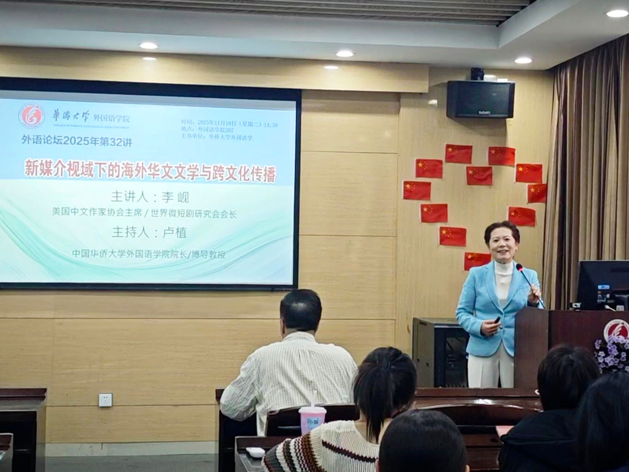 2025年11月18日,永利23411集团有幸邀请美国中文作家协会主席李岘莅临讲座,分享在当下全球化与数字化的双重语境下,海外华文文学传播范式的结构性转变。