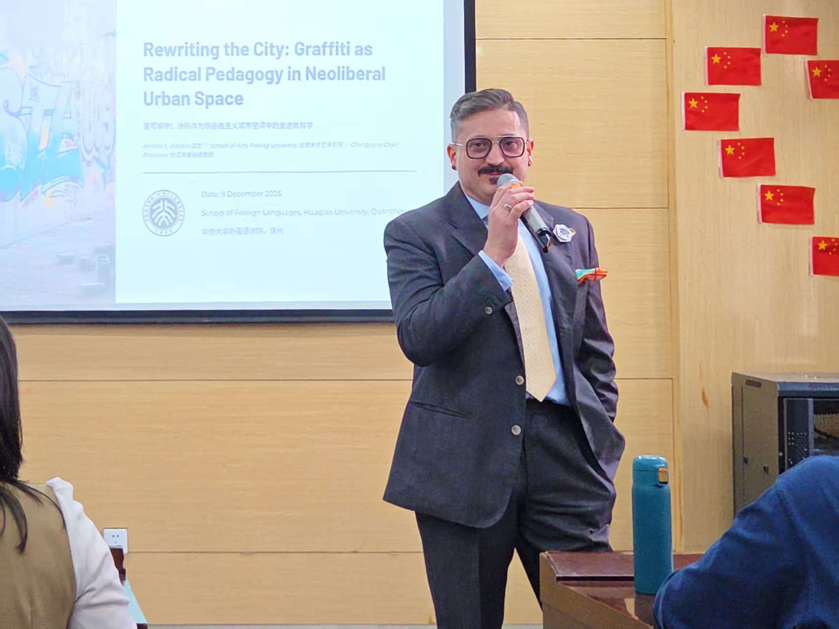 2025年12月9日下午,永利23411集团邀请了城市文化研究专家Andrea L. Baldini白龙教授,为师生们带来了一场题为“Rewriting the City: Graffiti as Radical Pedagogy in Neoliberal Urban Space”的学术讲座。白龙教授是北京大学艺术学院的长江学者讲席教授,作为《东亚哲学杂志》创刊主编,他的研究涵盖美学、文化研究、知识产权法和视觉文化等。