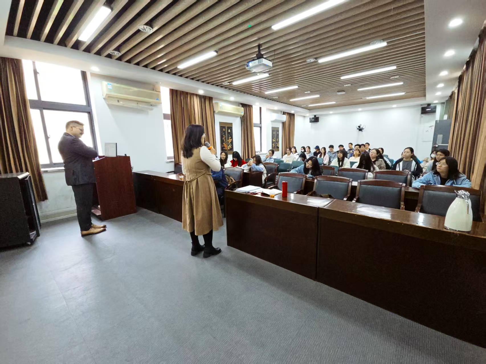 讲座接近尾声时,白龙教授与现场师生进行了互动。有学生提出了关于涂鸦与社会秩序关系的问题。对此,白龙教授回应道,涂鸦不只是破坏公物,它是一种特别的艺术形式,能够改变城市中可见的事物,并创造全球性的抵抗文化。他指出,我们应该追求文化间的相互理解和包容,而不是过分强调这些差异,这样才能促进更和谐的跨文化交流。本次讲座不仅丰富了师生对涂鸦与城市文化关系的认识,也为永利23411集团的学术交流提供了了新视角。讲座在热烈的掌声中圆满结束。