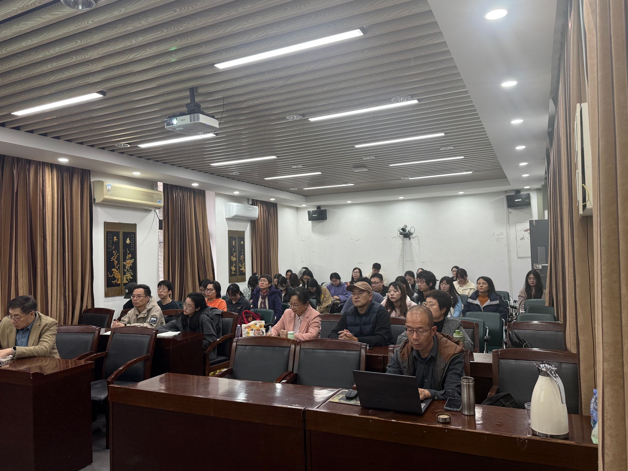 在交流互动环节,于教授结合自身经验,对小语种项目申报特点、团队成员协作机制以及样章翻译学术性与可读性的平衡等问题,给予了专业而细致的解答,现场气氛热烈。