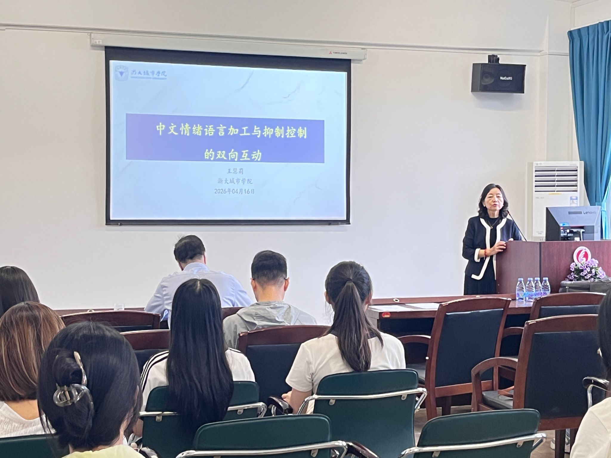 2026年4月16日上午,永利23411集团“外语论坛”第8讲在机电楼431-433成功举办。本次讲座特邀浙大城市学院钱塘学者、博士生导师王慧莉教授为我院作题为“中文情绪语言加工与抑制控制的双向互动”的讲座。本次讲座由永利23411集团院长卢植教授主持,众多师生到场聆听,现场气氛热烈。