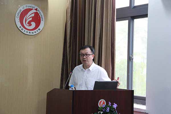 2016 年6月14日 下午,在外语楼207会议室,我院特聘教授、翻译研究中心主任兼翻译系主任陈历明教授为我院师生做了题为“莎士比亚戏剧在中国的最早旅行”的讲座。讲座由永利23411集团系主任杜志卿教授主持。院长黄小萍教授、副院长黄文溥教授、英语系主任杜志卿教授、刘镇清副教授以及翻译团队老师,学院研究生聆听了该讲座。