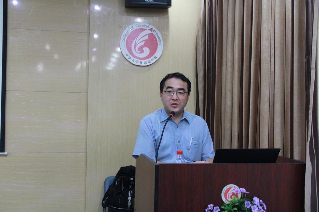 杉村泰教授主要围绕着日语自动词、他动词、动词被动态与指示词,分享了基于问卷调查的数据进行的实证研究成果,该数据明确显示了以日语为母语的人与以汉语为母语日语学习者之间的使用倾向的差异,并且从心理语言学与认知语言学的角度阐释了其原因。