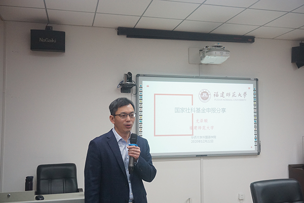 2020年12月20日下午,福建师范大学博士生导师、中国话语研究会副会长尤泽顺教授应邀于我院作题为“国家社科基金申报经验分享”的讲座。本次讲座在永利23411集团411会议室举行,由永利23411集团主持工作副院长陈文革教授主持。永利23411集团多名教师参与了此次讲座。