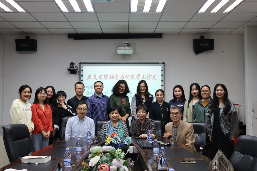 活动之始,金莉教授从两个方面与外院师生们分享了她个人从事英美文学研究的切身体验。她认为她个人从事英美文学研究的体验可以用“无尽苦为伴”来概括。她说,英美文学研究离不开大量的外文原著阅读,所谓读万卷书行万里路,积累越多,路自然走得越稳。金教授指出,要走好英美文学研究之路,研究者要有“一条路走到黑”的精神:既然选择了某一研究领域,就要坚持不懈。金教授建议,年轻学子们可以通过参加专题学术研讨会或阅读一些重要学术期刊上所刊载的文章来了解国内外英美文学研究的动态,以助自己确定有价值的选题。她还强调,年轻学子要着力提高中文的表达能力,因为学术杂志不仅看文章的选题,也十分重视研究者的语言表达水平,有的稿子虽然观点新颖,但语言表达不佳也是无法发表的。