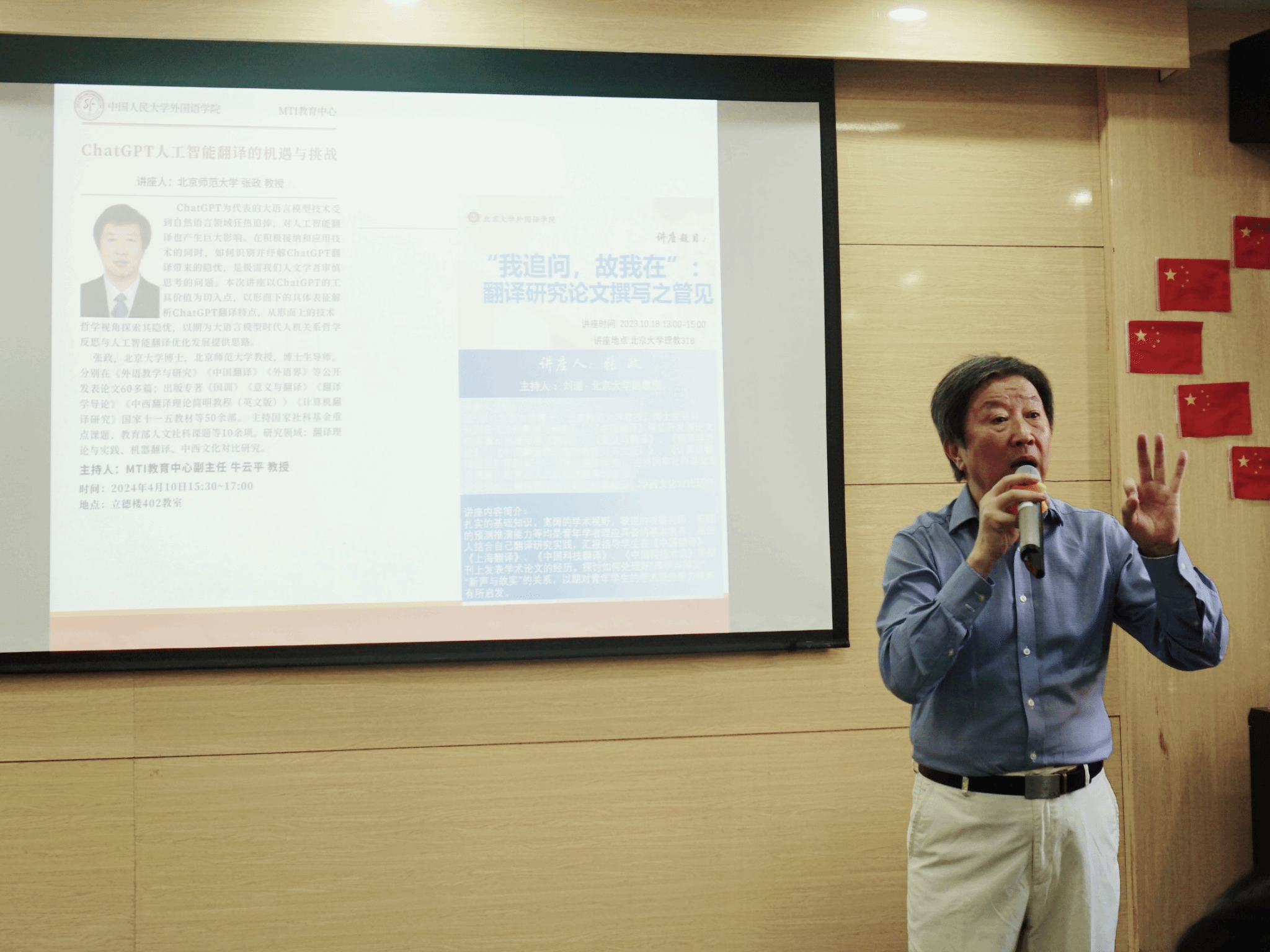 2024年10月22日下午,北京大学博士、北京师范大学教授、博士生导师张政教授受邀来我院开展题为“ChatGPT给翻译带来的隐忧与疏解”的讲座。本次讲座由院长卢植教授主持,学院教师及研究生踊跃参与,座无虚席,现场气氛热烈。