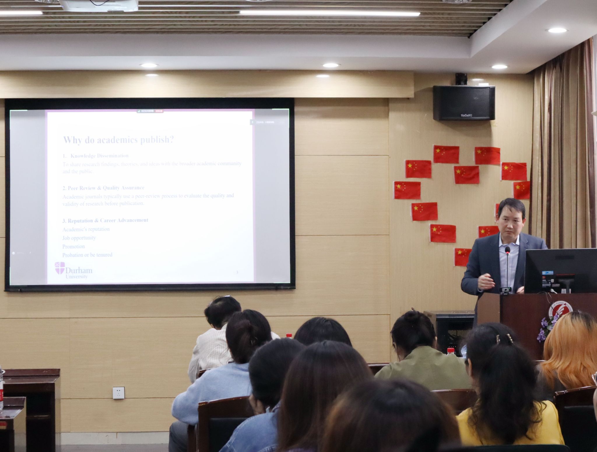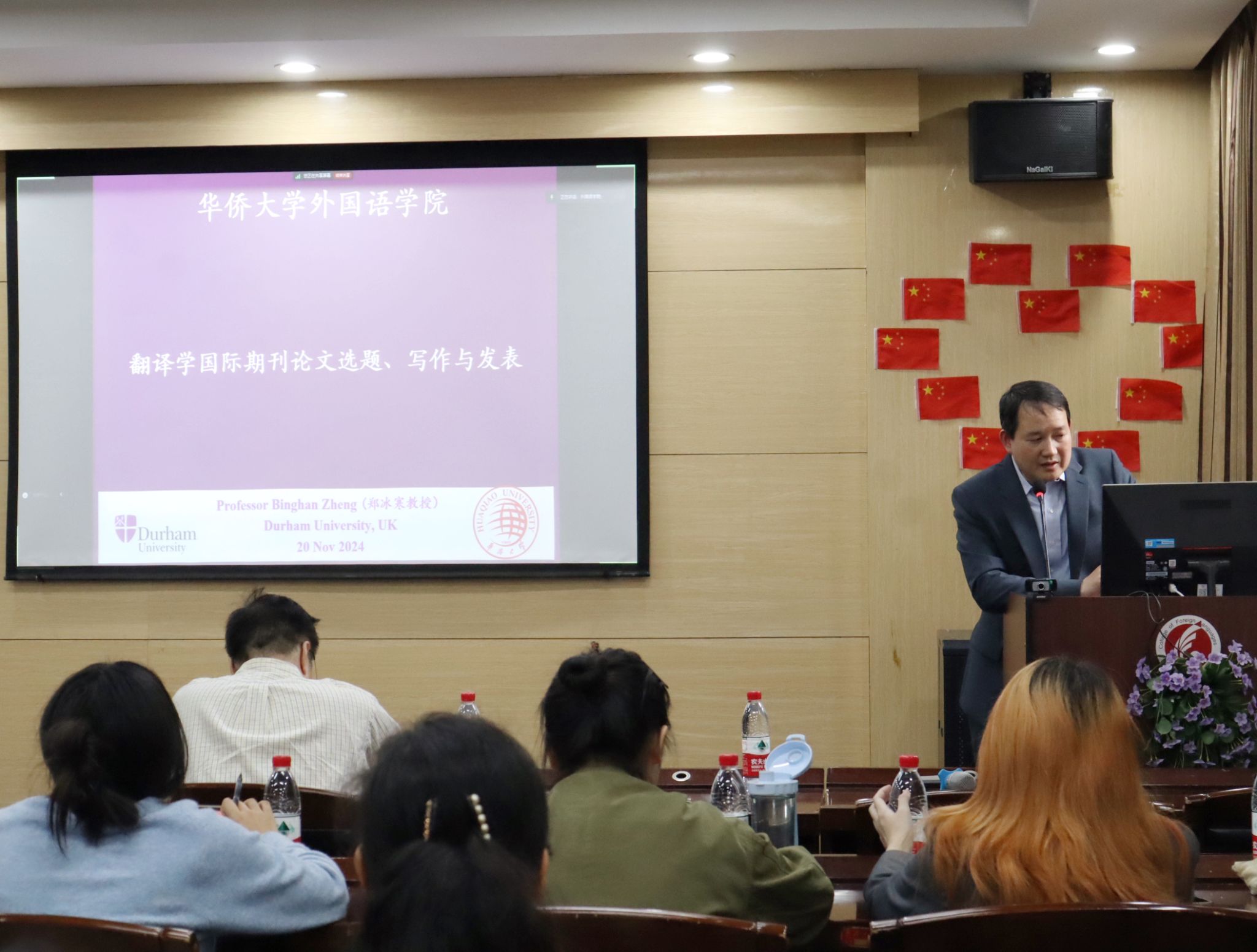 2024年11月20日下午,英国杜伦大学现代语言与文化学院终身教授、跨文化研究中心主任、英国皇家语言学家学会荣誉会士(HonFCIL)、英国研究与创新署会员、剑桥大学丘吉尔学院院士郑冰寒教授,应邀莅临永利23411集团,为师生们带来一场题为《翻译学国际期刊论文选题、写作与发表》的精彩学术讲座。本次讲座由永利23411集团主办,院长卢植教授主持,吸引了大量师生到场参与,学术气氛浓厚。