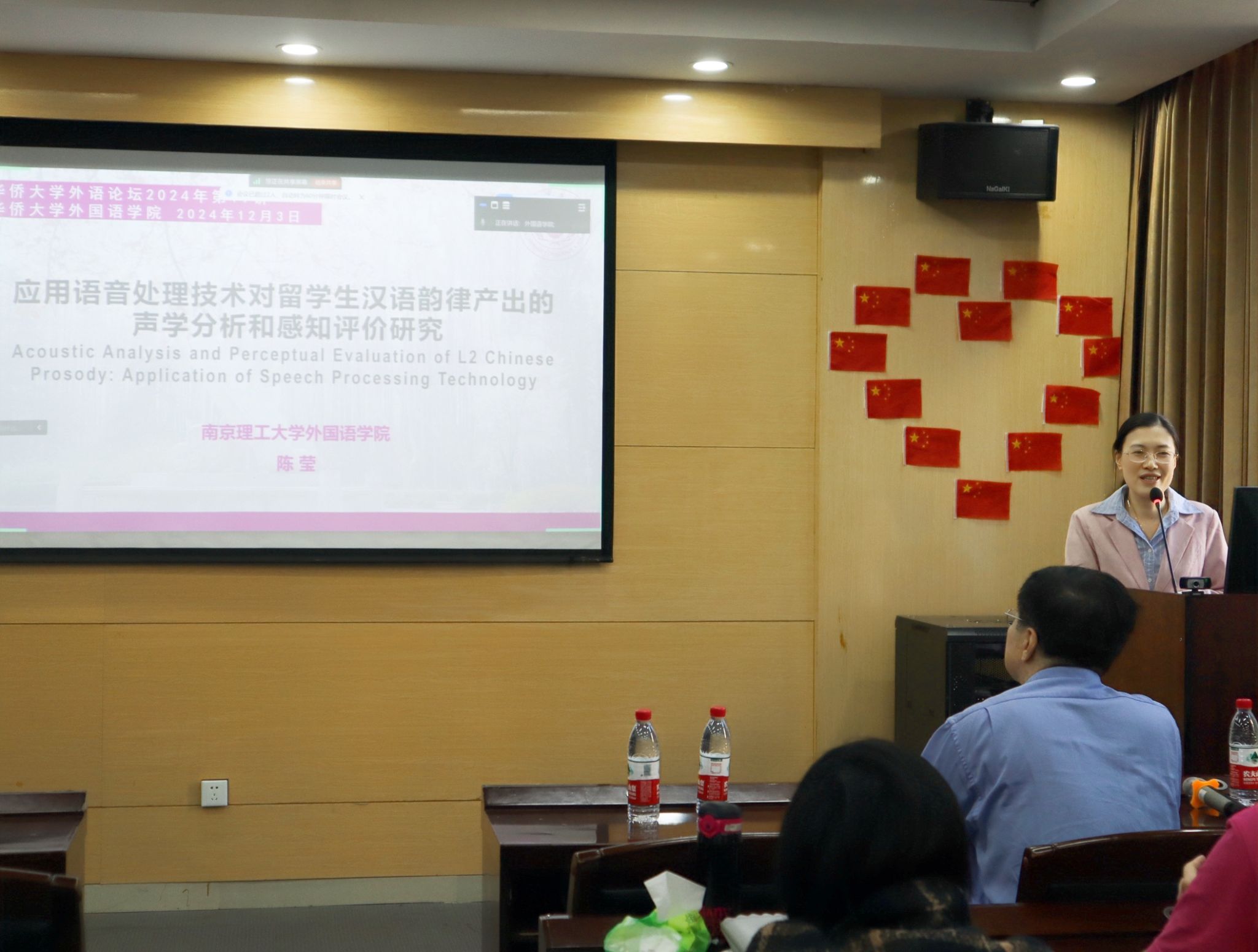 2024年12月3日下午三点,外语楼207室内座无虚席。南京理工大学博士生导师、教授陈莹带来了题为《应用语音处理技术对留学生汉语韵律产出的声学分析和感知评析研究》的精彩讲座。通过对巴基斯坦、哈萨克斯坦和越南留学生产出的汉语普通话声调和语调进行深度分析,陈莹为我们揭示了来华留学生汉语学习中的语音特征。