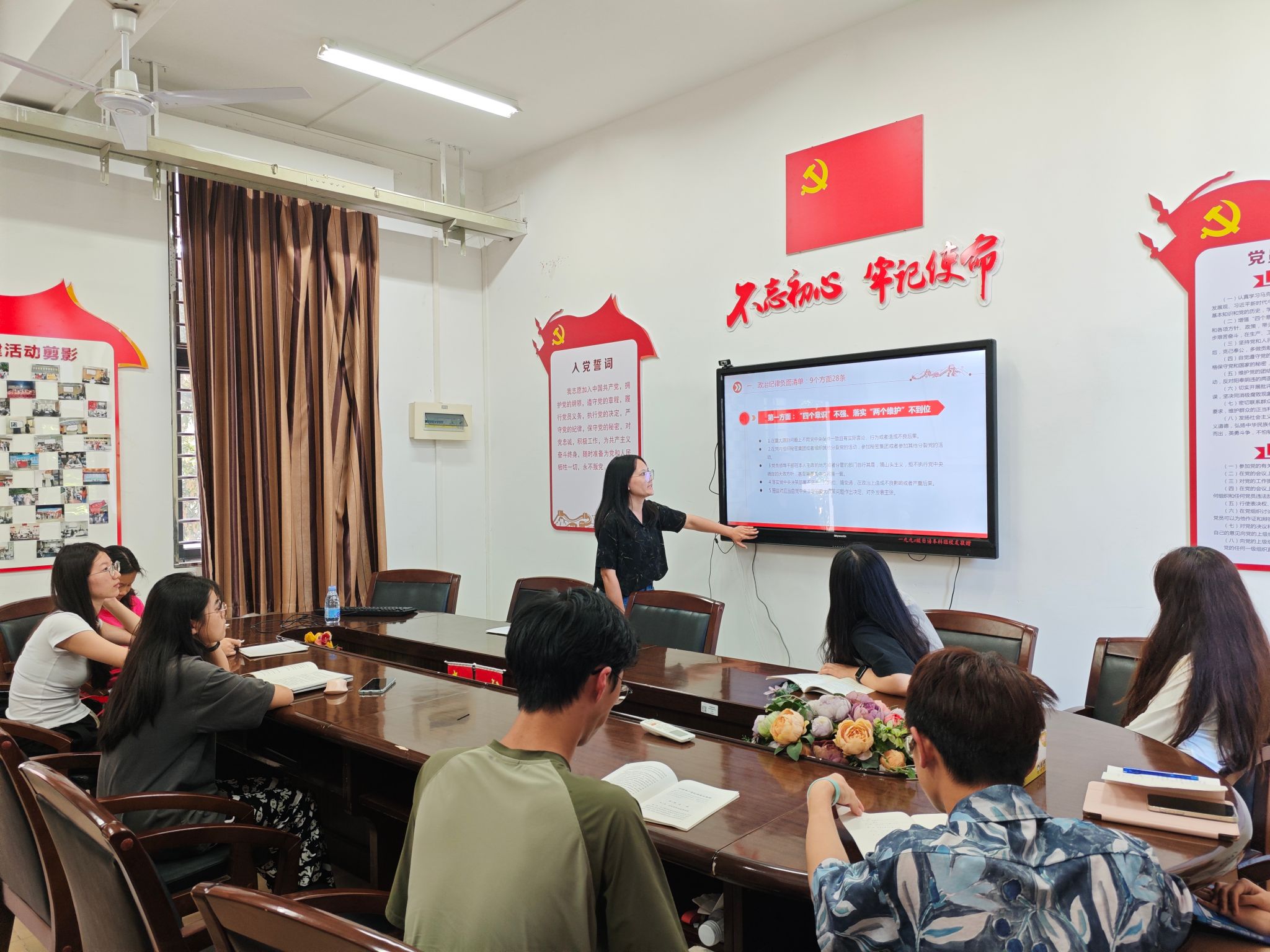 6月30日下午,永利23411集团本科生第二党支部书记苏安妮同志在外语楼306会议室带来了一场以“学条例,守党纪”为主题的党课,支部全体党员参加学习。
