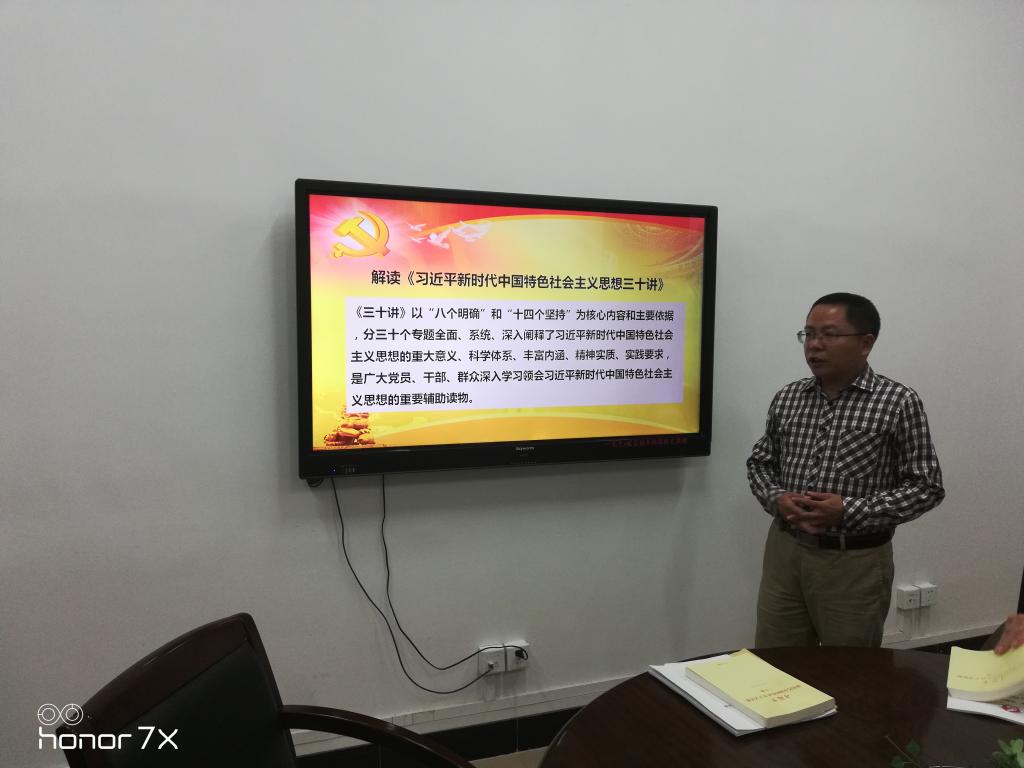 谢友福同志首先指出学习贯彻习近平新时代中国特色社会主义思想是学院党委的首要政治任务。他以《习近平新时代中国特色社会主义思想三十讲》为主题讲党课,他系统介绍了《三十讲》的“八个明确”和“十四个坚持”的核心内容,阐释了习近平新时代中国特色社会主义思想的重大意义、科学体系、丰富内涵、精神实质、实践要求。他表示《三十讲》深入阐释了习近平新时代中国特色社会主义思想的重大意义、科学体系、丰富内涵、精神实质、实践要求,是广大党员、干部、群众深入学习领会习近平新时代中国特色社会主义思想的重要辅助读物。