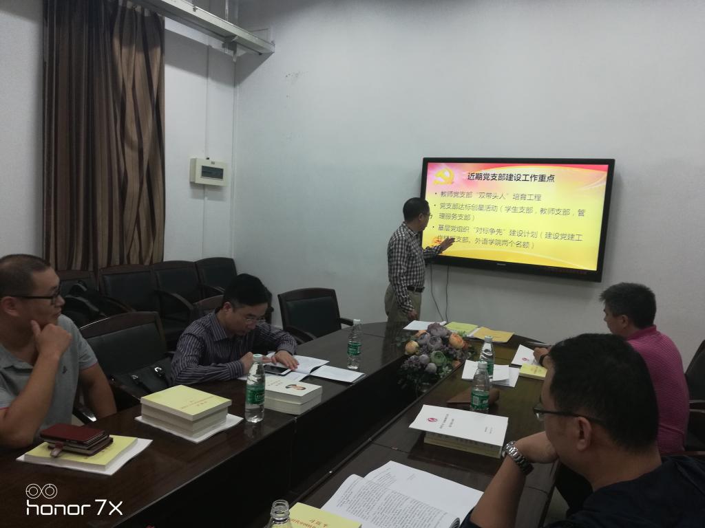 2018年10月19日下午,永利23411集团党委在学院306会议室开展新形势下进一步加强党支部建设专题会议,学习贯彻全国和全省高校思想政治工作会议精神,研讨部署学院支部建设工作。会议由永利23411集团党委书记谢友福主持,党委委员、中心组成员、各支部书记出席本次会议。