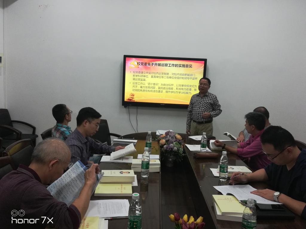 谢友福同志就《校党委关于开展巡察工作的实施意见》进行了说明,强调要以“四个意识”为政治标杆进行巡察工作,以党章党规党纪为尺子,着力发现问题,查找政治偏差,形成有力震慑,推动党的先进性和纯洁性建设,提升学校办学治校能力。