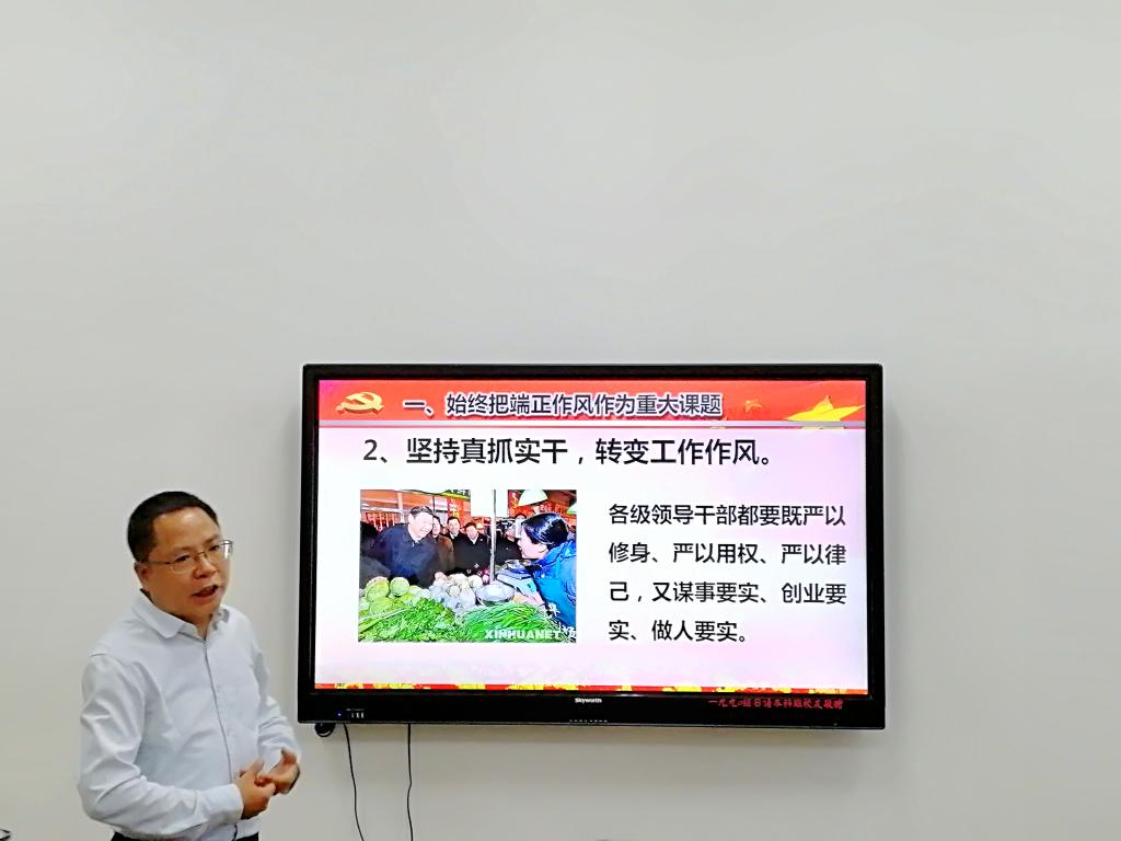 谢友福书记首先强调学习和贯彻党的十九大精神是我们当前和今后一段时间的首要政治任务,并对上一周在浙江大学专题研修班的学习内容做了简要回顾及概括。他表示,将高校问题与理论知识相结合,在实践中领悟和运用理论知识,是一种扎实有效的学习方式。他从端正作风、提高标准、增强能力三方面,阐述了从严治党的重要性,深入浅出地结合生活、工作等各方面对党的十九大所强调的从严治党进行了生动又深刻的解读。他要求广大党员、教师始终把端正作风作为重大课题,坚定理想信念,改进思想作风;坚持真抓实干,转变工作作风;坚决纠正虚假,改变文风会风。同时希望广大党员积极响应习总书记号召,始终把提高标准作为重大使命,把增强能力作为重大追求,从“出主意、办事情、善管理、修品行”这四方面不断提高党性修养。