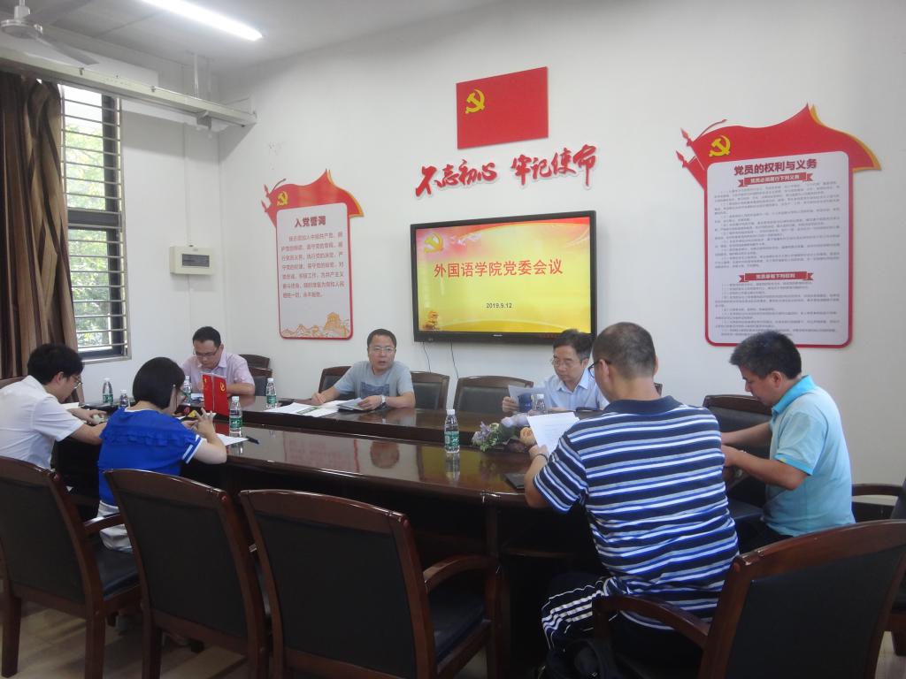 2019年9月12日下午,永利23411集团党委在外语楼306会议室召开“不忘初心、牢记使命”主题教育讨论会,全体党委委员和组织员参加会议,会议由学院党委书记谢友福主持。