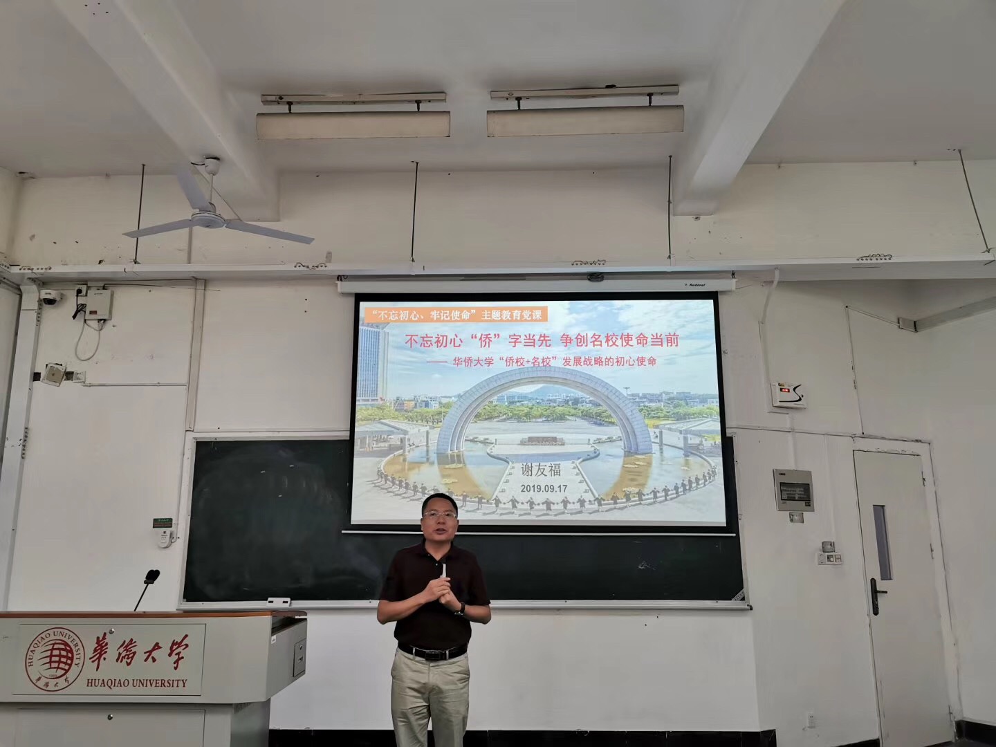 2019年9月17日下午,永利23411集团党委书记谢友福在经管1-3阶梯教室,以“不忘初心‘侨’字当先,争创名校使命当前”为题,为学院中心组成员、党委委员、全体教工党员上了“不忘初心、牢记使命”主题教育首场党课。