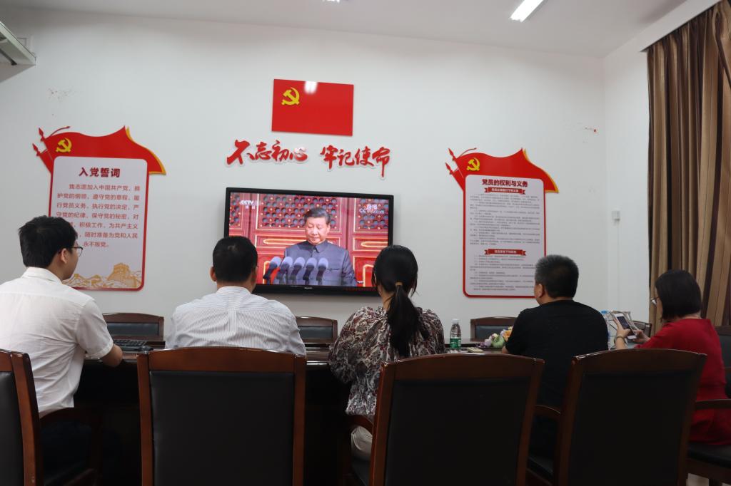 2019年10月1日永利23411集团党委委员、教工党员和学生党员分别于学院306和207会议室,有序收看庆祝中华人民共和国成立70周年大会的现场直播。上午10点,我院80多名党员和入党积极分子按时到达,着装整齐,有序就坐,迎接这一伟大而神圣的庆典。
