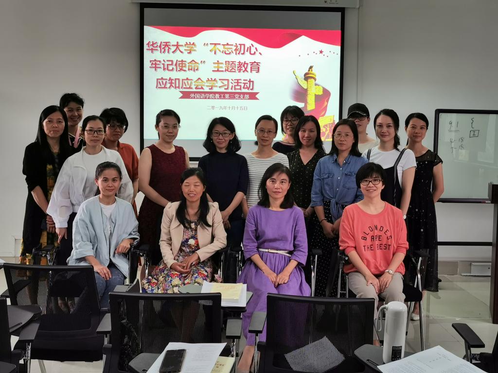 2019年10月15日下午,永利23411集团教工第三党支部在厦门校区F2-403举行了“不忘初心、牢记使命”主题教育应知应会学习研讨活动,支部全体党员从集中文献学习、应知应会问答和学习心得分享三个环节对主题教育进行学习研讨。