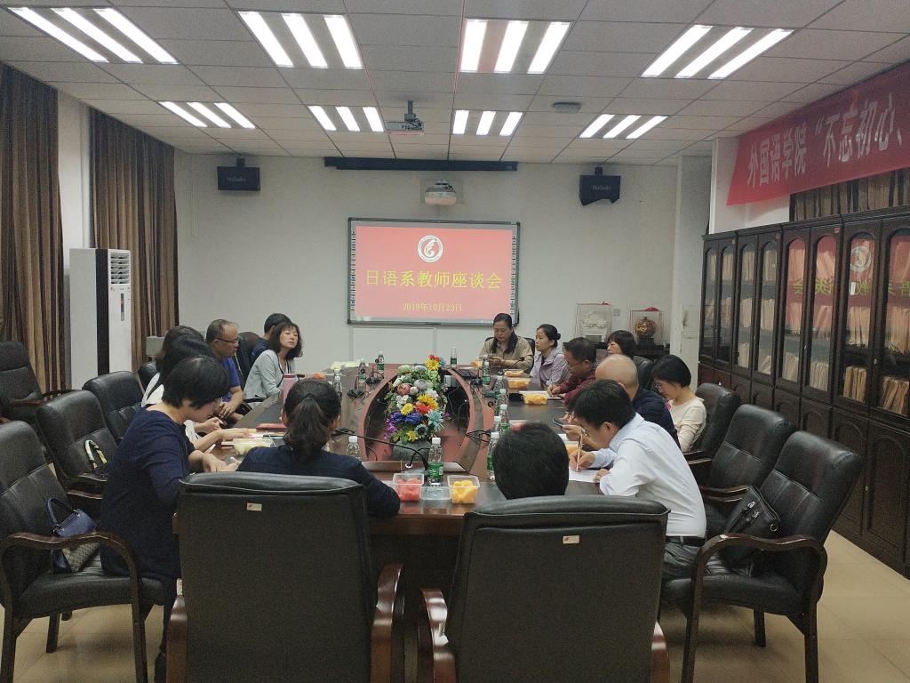 2019年10 月23日下午,永利23411集团于外语楼411会议室召开日语系教师座谈会。院党委书记谢友福主持会议,毛浩然院长、黄文溥副院长和日语系全体教师出席本次座谈会。