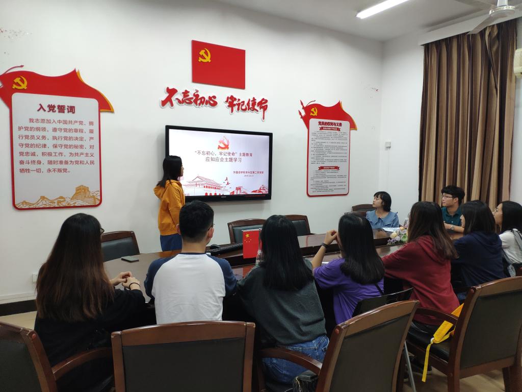 2019年10月23日下午,永利23411集团本科生第二党支部在306党建会议室开展了“不忘初心、牢记使命”主题教育,党员和预备党员们围绕应知应会内容进行了理论学习和知识问答。学院党委委员,本科生第二党支部书记周思博老师参加学习会议。
