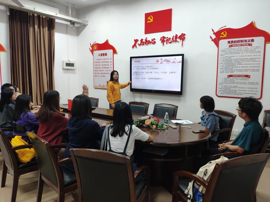 本次学习会,党支部副书记李梦妍首先就习近平总书记提出的“四个迫切需要”和“三个结合”向大家阐述了开展本次主题教育的重大意义和主要内容。紧接着,与会的党员和预备党员从“不忘初心、牢记使命”主题教育的总要求、根本任务和具体目标三方面进行深入学习,牢牢把握党对党员同志的要求,加强党员意识、树立党员优良形象。
