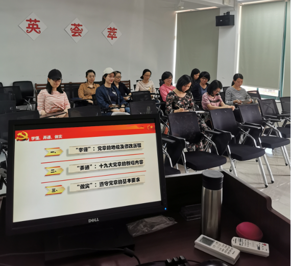 首先,林璐老师带领支部党员从三方面做好专题讨论,首先是“学懂”党章的地位及修改历程。支部党员一同回顾党章修改的基本历程,尤其是十九大党章修订的新内容,并按照党章,逐条检查,结合日常工作生活,进行自我对照。第二是“弄通”十九大党章的新增内容,并结合自身近期教学、科研工作等情况检视自身问题与不足,逐个进行发言,发言切合实际,避免假大空现象,并要积极整改,做好表率。第三是“做实”遵守党章的基本要求,作为一名党员教师,我们要积极面对挑战,在工作和生活上不能放松懈怠,勇于走出舒适圈,做好自身规划。