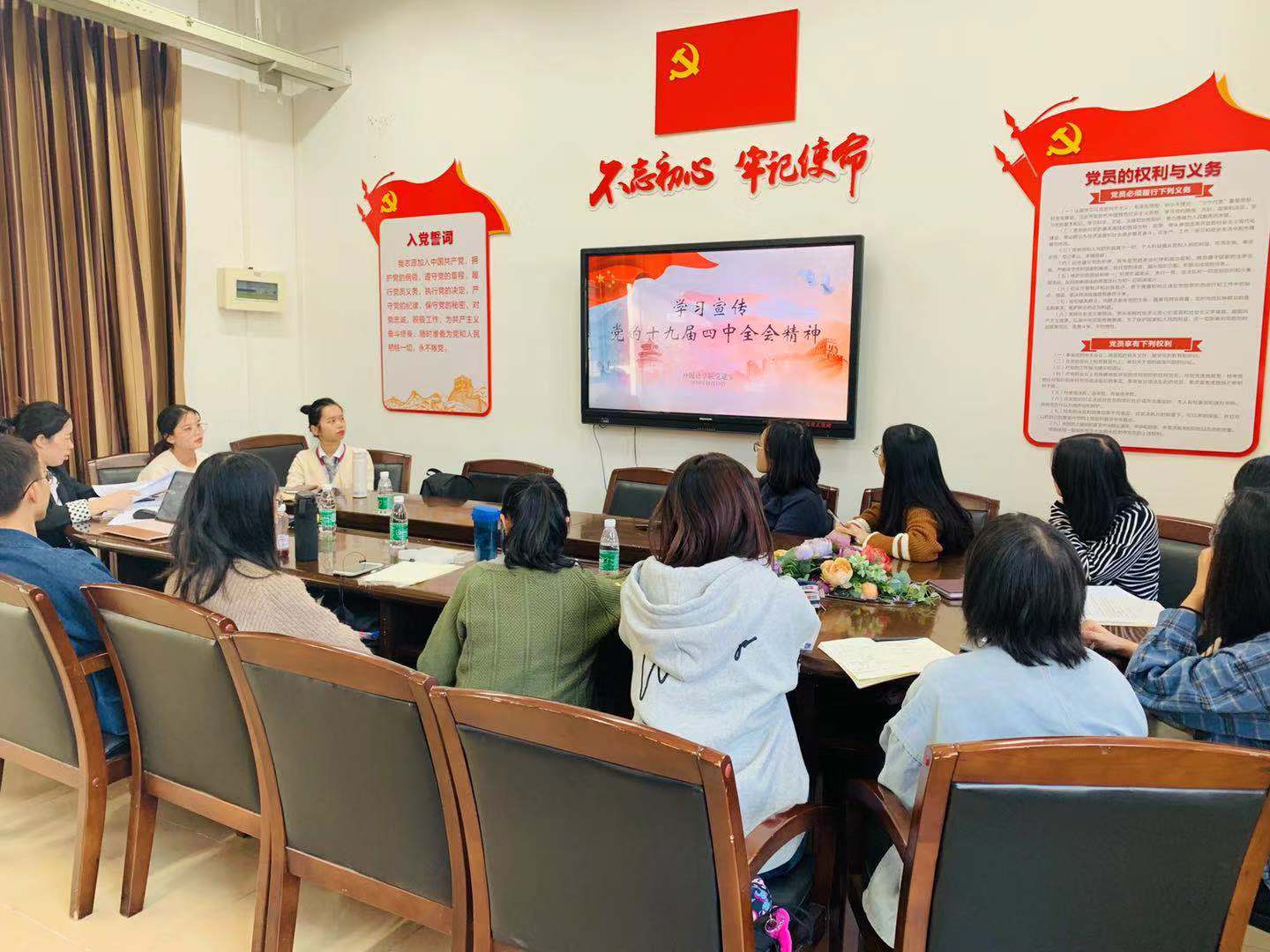 首先,吴倩倩老师带领与会党员集中学习了习近平总书记在党的十九届四中全会上的报告和决议主要内容,突出强调在中国特色社会主义事业进入新时代,在庆祝中华人民共和国成立70周年之际,党的十九届四中全会的召开具有重大历史意义和深远战略意义。尤其是共青团作为党的助手和后备军,作为党联系广大青年的桥梁和纽带,必须认真学习、广泛宣传、坚决贯彻全会精神。这一点更加要求我们大学生要进一步增强“四个意识”,积极学习,努力工作,自觉践行社会主义核心价值观,大学生党员要充分发挥党员先锋模范作用,做好学习和宣讲。随后吴倩倩老师针对本次四中全会精神学习的文件,对学生支部的学习要求做了说明,并强调各学生支部务必端正学习态度,强化学习效果,扩大学习范围,结合“三会一课”做好宣讲。