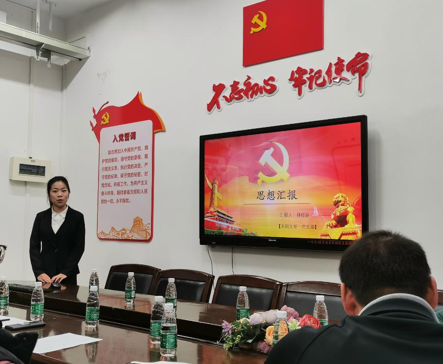 党委书记谢友福首先强调,批评和自我批评是我党的优良传统和作风,各位同学要实事求是地对自己预备期内的思想、学习、工作、生活等各方面进行深入剖析,展示自己的进步和收获,将其运用在今后的实践中。同时要敢于直面自己的不足,虚心接受他人的指正,并加以完善。希望大学生党员能够经得起考察,做得到先进,保持住优秀,在思想、生活、学习和工作等方面不断追求进步和自我提升。随后17位预备党员就近期思想状况及学习、工作、生活情况依次向党委进行汇报。其中本科生第一党支部李坩镁同志表示,自己在大学期间学习目标明确,方向坚定。能自觉学习理论知识,夯实自己的基础水平,且更注重在实践中检验理论,曾参与贫困地区助教,在当地实际志愿服务之后,对国家扶贫脱贫工作有了更加深刻的认识。但缺乏锻炼,今后将进一步改进。本科生第二党支部张博冉同志谈到,“韬光养晦、有所作为”是自己的座右铭。在思想上,坚决拥护党的领导,主动学习党的理论知识,有坚定的为国家建设做贡献的决心和勇气。在爱尔兰交流时期也越发感受到中国的发展,为祖国的强大而骄傲。本科生第三党支部陈怡然同志表示,在日常学习生活中,自己积极主动通过“学习强国APP”来进行理论知识的学习,并发现如今党和政府用语越发“年轻化”、“接地气”,这是吸引、引导年轻人主动进行理论学习的很好的途径和方法。自己没有选择考研,而是找工作,希望能将专业知识应用到工作中,并在进入社会后更好服务群众。研究生党支部林飘飘同志介绍了自己在担任研究生会主席工作时的经历,表示自己还存在一些不足,平日里专注考证,在论文发表方面尚不理想,在今后工作汇总应该目标明确,做好规划努力进步。