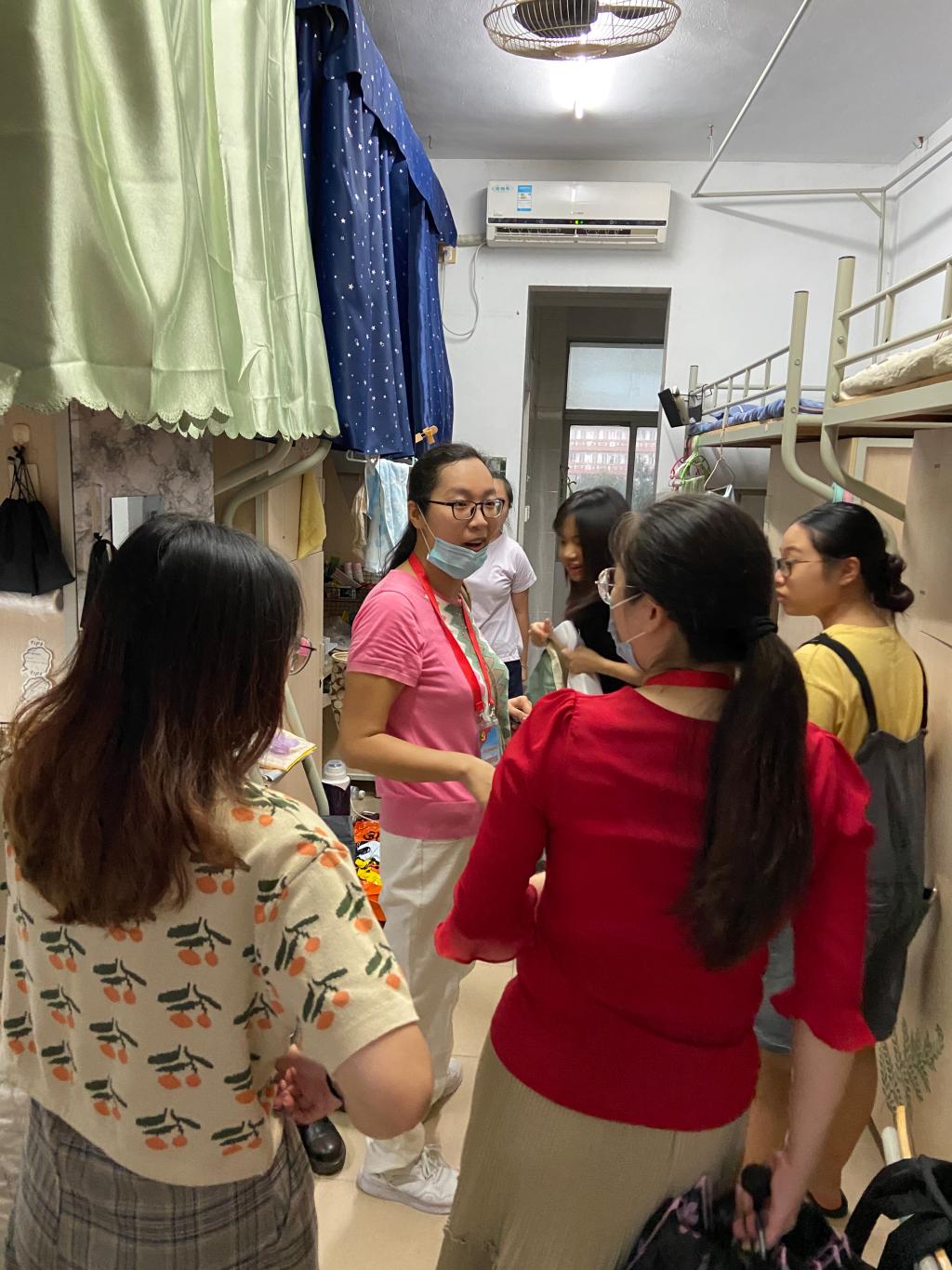 由于新冠肺炎疫情影响,yL23411永利集团的同学们经历了学生时代最长的“假期”。就在8月22日和23日,同学们迎来了返校复学的那一刻。为保证学生顺利复学,永利23411集团教师党员先锋队主动请缨,积极参与到后期保障工作中。老师们活跃在迎接学生归来的每个角落,协助验证通道、帮助拿行李、引导车辆、走访宿舍、查看设备、心理疏导等,特别是对宿舍的住宿情况,比如水电情况、卫生情况、安全状态等进行了详细的询问,同学们见到久别一个多学期的老师和班主任走进宿舍,倍感亲切,走访每一间宿舍的过程中,返校同学们住宿上和生活上的一些问题疑问也都及时向教师们反映,党员老师们悉心解答,并及时联络相关部门进行处理,确保学生返校第一晚的住宿舒适安全。