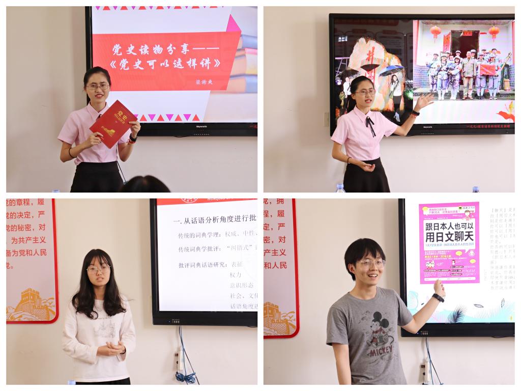 本次“读党史辉煌,忆岁月峥嵘”读书分享会中书目类型丰富,各专业同学从党史读物中汲取历史智慧,从语言学读物中增长见识,从日语读物中学习地道表达,活动参与人员收获颇丰。