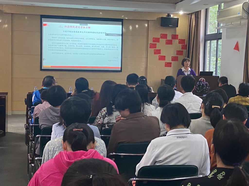 党委书记李璐岚首先对近期学院党委相关工作进行了通告,随后带领全体教师职工解读了张桂梅先进事迹及《yL23411永利集团关于加强师德师风建设工作实施意见》等文件的主要要求。她着重强调永利23411集团全体教师应自觉增强责任感、使命感、荣誉感;自觉维护以德立身、以德立学、以德施教、以德育德的教师队伍形象,自觉落实“有理想信念、有道德情操、有扎实学识、有仁爱之心”的教师队伍规范,汇聚合力,提升教学成效。随后,与会教师共同观看了全国“七一勋章”获奖者张桂梅同志在颁授仪式上所作的演讲,李璐岚号召全院教师要以张桂梅同志为榜样,学习张桂梅同志坚守初心、对党忠诚的崇高品格;学习她爱岗敬业、爱生如子的高尚师德;学习她执着奋斗、无私奉献的至诚情怀。随即,在场人员共同学习了《习近平给全国高校黄大年式教师团队代表的回信》,学习优秀教师黄大年的教学精神及优秀品质。李璐岚同志指出,弘扬“黄大年”教师团队精神要求广大教师“立德修身”“潜心治学”“开拓创新”,了解学生思维,转变教学模式,以科研反哺教学,在知识探究中激发学生潜能,从而不断提升教书育人本领。