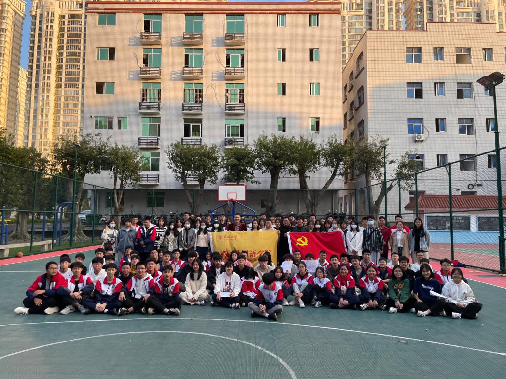 当日下午二时许,支部的同志们来到了这座位于洛阳江畔的国际学校。校园占地不大,却显一派小巧玲珑。崭新的球场上早已缀满了等候多时的青春气息。在两校老师的沟通和组织下,支部成员迅速地和高三段2个班同学们打成一片,并井然有序地将同学们分成了五个小组互动交流。