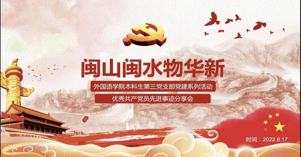 2022年8月17日,永利23411集团本科生第三党支部专题学习了“闽山闽水物华新”和优秀共产党员先进事迹分享会,会上参与分享的老师与同学们分别讲述了学习心得和优秀党员的事迹与精神:任晶晶同学分享了优秀党员张桂梅同志的事迹,党员应以张桂梅老师为榜样,作为新时代青年要牢记使命,珍惜当下的大好环境,努力奋斗。李祯同学分享了优秀党员郭明义同志的事迹,30多年来,郭明义无论在什么岗位上,都像雷锋那样忠于职守,爱岗敬业,做一颗永不生锈的螺丝钉,把工作当事业,把职责当使命。在郭明义身上,我们看到了一名普通职工的高尚情操和对企业的热爱,理解了主人翁精神的真谛。刘颖同学分享了优秀党员黄文秀同志的事迹,我们要学习黄文秀不忘初心、牢记使命,勇于担当、甘于奉献的精神,是我们大家学习的榜样,一批又一批的青年在这条新的长征路上接续奋斗,开辟星辰大海。刘冰冰同学分享了优秀党员廖俊波同志的先进事迹,逝世8个月后,廖俊波被评为第六届“全国敬业奉献道德模范”。他像一湾俊朗清波,滋润了闽北大地。他像一颗种子,种在广大干部群众心里。陈鑫艺同学分享了优秀党员董云阁同志的先进事迹,年仅24岁董云阁烈士用他年轻的一生,向我们讲述了他永存的英勇不屈的烈士精神。余新田同学分别分享了七一勋章获得者周永开、崔道植、刘贵今一生为党的事业无限忠诚、默默奉献的先锋事迹。