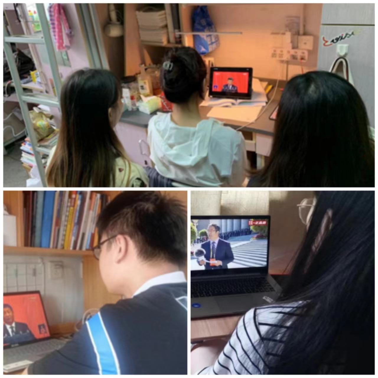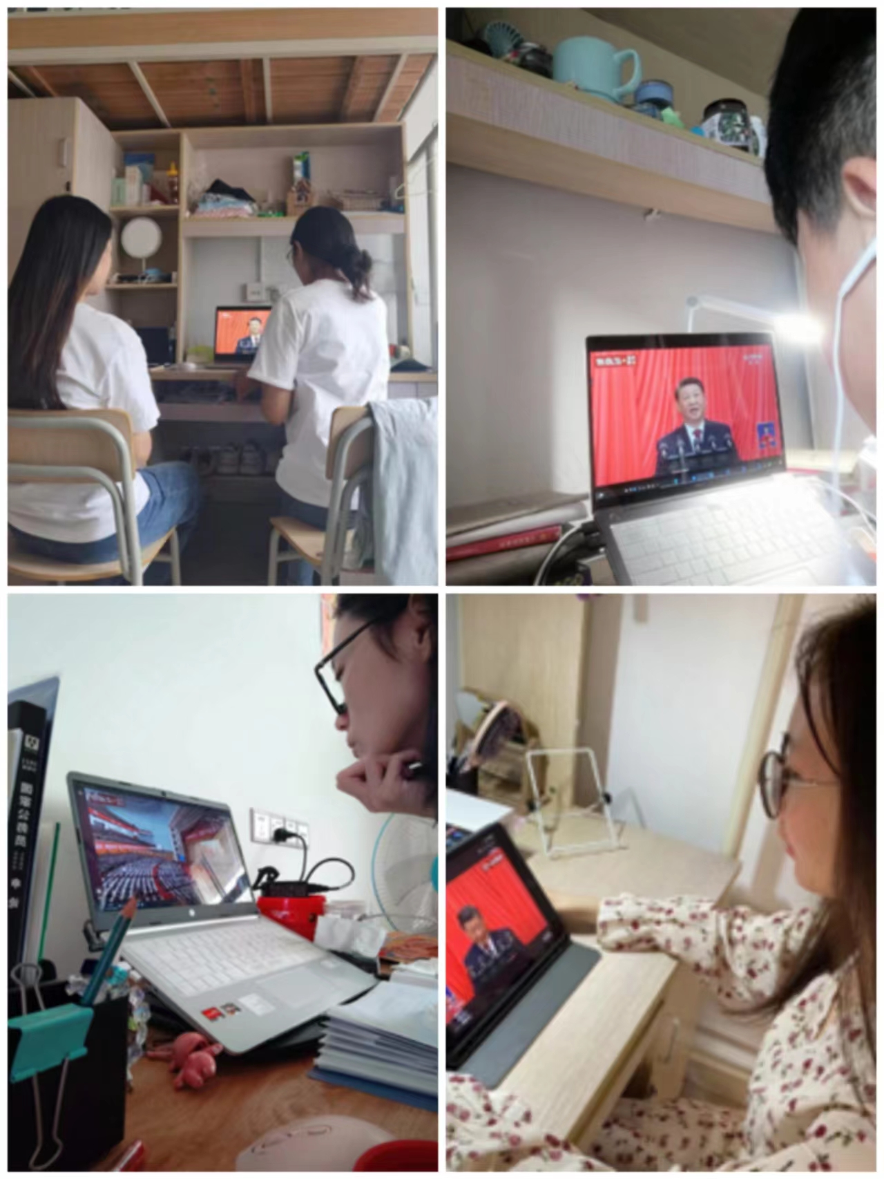 林泷同志认真谈到:听到习近平总书记的报告,只感觉中国真正变得越来越强大了。不管是教育领域,还是生态文明建设等,都朝着越来越好的方向前进。很多概念和名词,如“扫黑除恶”“一国两制”,其实都已经耳熟能详,但反复在提,说明它们正是中国的关键词,需要重视,需要每个人了然于胸。疫情防控,全国上下团结一致,将爱心和温暖传递,隔绝病毒但不隔离爱。现在的中国是强大的温暖的中国,我为国家而自豪!吴霜同志与宿舍里的党员同志们一起观看了开幕式,共同学习,她分享道:“习近平主席的讲话既是一次对以往经验教训的总结,又是一次对未来的明智布局与展望。我认识到,中国的未来必定是在阳光下灿烂的、辉煌的。两岸青年朝气蓬勃,正如早晨八、九点钟的太阳。两岸关系和平发展的未来寄托在青年身上。最后,孟祥露同志也有感而发,感叹道:“历史告诉我们在这风风雨雨建设中国路上,中国共产党一心为民的宗旨从来没有变过,社会发展取得了前所未有的成就,综合国力不断增加,人民生活水平不断提高。在中国共产党的领导下,我们国家持续繁荣发展,我们的个人生活富足、快乐。”