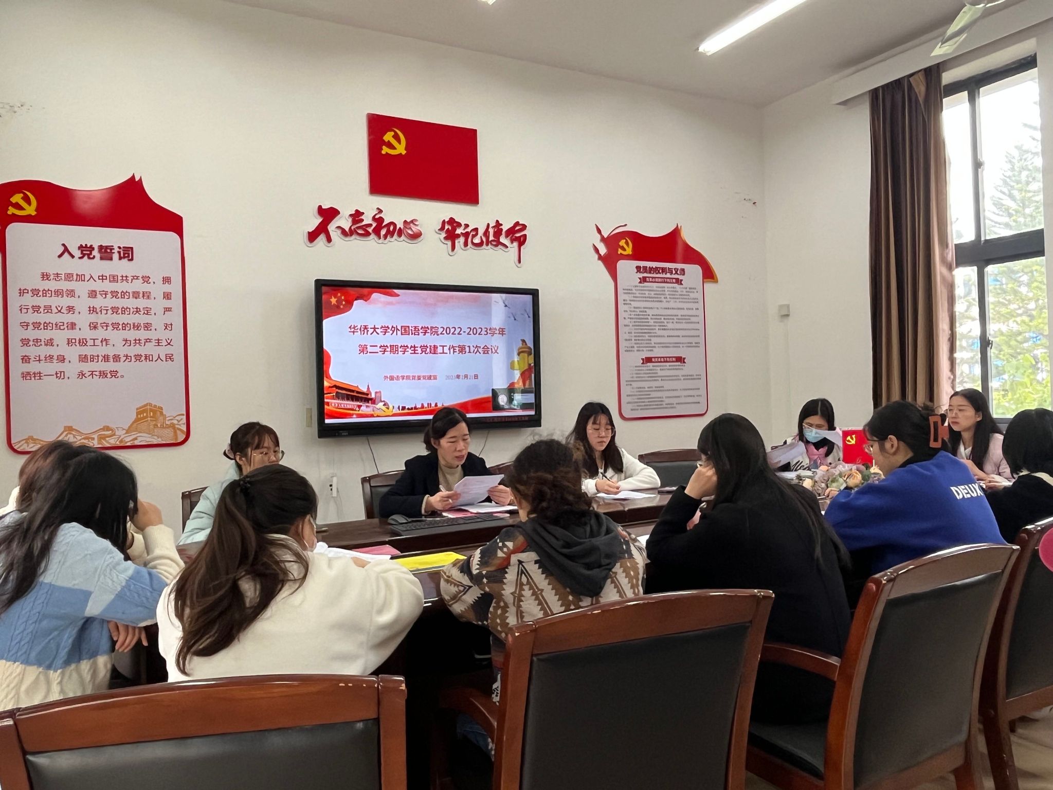 2月21日下午,在新学期新气象之际,学院党委组织员吴倩倩于外语楼306室组织召开了学院学生党建工作第一次会议,各学生支部负责人、党建室全体成员参加会议。