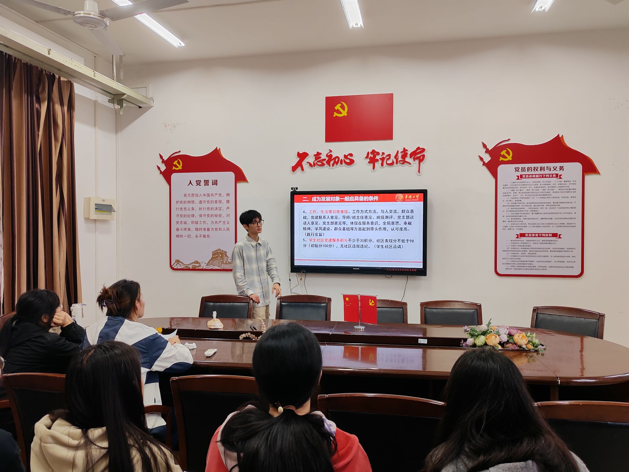 其中,一些同志分享了自己在不同成长阶段对党的认识的变化,有同志生动讲述了自己参与志愿活动的经历,还有同志认为学生工作是与群众联系、为他人服务的体现,并提到自己加入党组织的动机是为了提升自我,为社会作出贡献。同时,入党积极分子们都对自己在学习和生活中存在的缺点进行了深入的反思总结,他们认识到自己需要继续努力,以党员的标准严格要求自己。每位同志汇报完毕后,各自的入党培养联系人对他们的学习、工作和实践活动等方面进行了总结发言。党支部书记黄昌杰同志也针对各位积极分子的汇报提出了自己的意见,比如对学生工作的负责程度等方面进行了探讨。