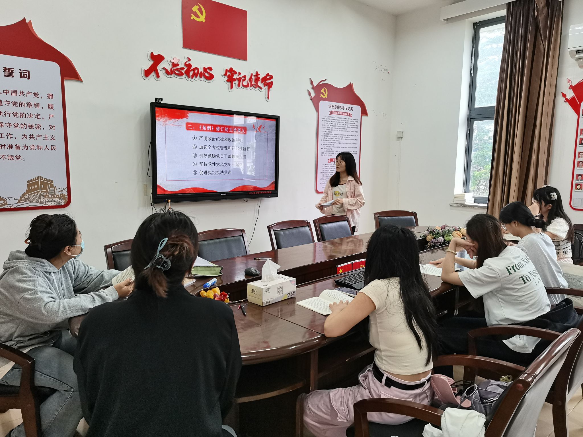 最后,支部党员邱琳老师总结强调,如今我们进入新时代、走上新征程,但是管党治党方面还存在一些尚未解决的问题,包括思想不端正和腐败等现象,若不及时解决,这些都可能会成为潜在的威胁和隐患,对未来的良好发展产生巨大的影响。对此,对青年党员的党纪学习教育,有助于帮助在读研阶段的大家树立正确的价值观和纪律观,更好的成长成才,为国家建设做贡献。