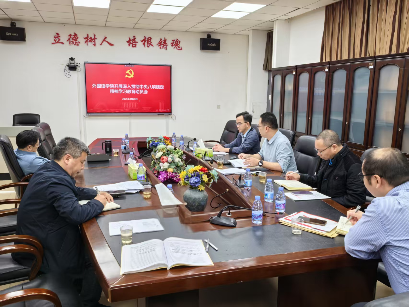 会议指出,要严格对标党中央《关于在全党开展深入贯彻中央八项规定精神学习教育的通知》要求,结合学校的总体部署,聚焦“学、查、改”一体推进,系统开展专题学习、问题查摆、整改落实等活动。通过原原本本学习《习近平关于加强党的作风建设论述摘编》、中央八项规定及其实施细则精神,以案为鉴、以案促改,深化警示教育,重点纠治形式主义,官僚主义。