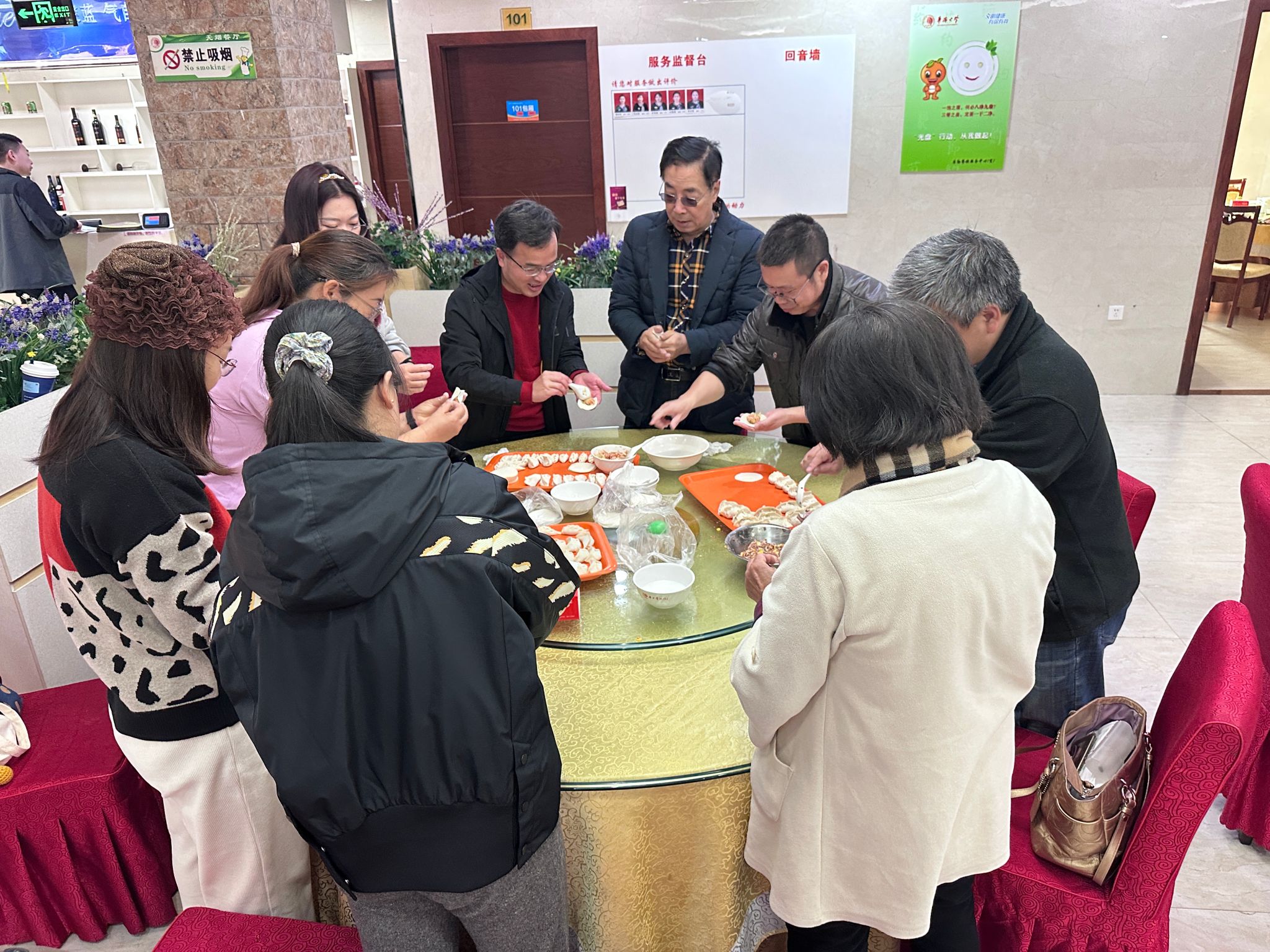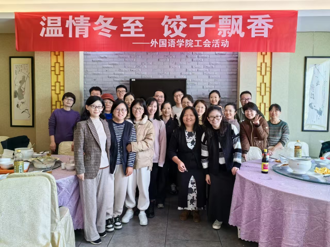 此次两校区同时举行包饺子活动,不仅弘扬了中华民族传统文化,还让大家在繁忙的工作之余感受到了外院大家庭的温暖。通过活动,促进了教职工们的沟通交流,增强了学院的凝聚力和向心力,加深了全院教职工之间的感情。