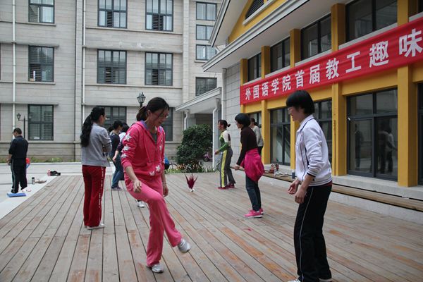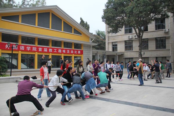 下午2点30分,永利23411集团党委书记谢友福宣布趣味活动比赛正式开始,院工会主席张宏文主持比赛。趣味运动会设置了拔河和踢毽子两个比赛项目,共有来自英语系、日语系、大学英语教学部及行政人员代表队的共计六支队伍参加了比赛,这些项目既有智慧和体力的角逐,又有团结协作的完美比拼。经过多轮角逐,大学英语部12级泉州教研室代表队获得拔河比赛冠军,厦门校区代表队和行政代表队分获二、三名。来自英语系的叶艾莘老师和大学英语部的叶绿青老师的“双叶组合”获得踢毽子比赛冠军,日语系郭惠珍、陈一平组合,刘碧秋、张宏文组合分获亚、季军。