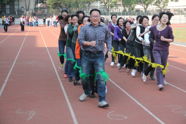 本次活动采取分组赛,每队由八名女教职工和两名男教职工组成。参赛人员一字排列,用绸带绑缚双腿,形成一条十人的长队,因此也被称为“蜈蚣赛”。整个比赛现场热闹非凡,场面精彩而激烈,各队成员团结协作,努力争先。永利23411集团选派的外国语一队以绝对优势获泉州校区一等奖。泉州外语二队获得三等奖,厦门外语一队也同样奋力拼搏,取得好成绩。