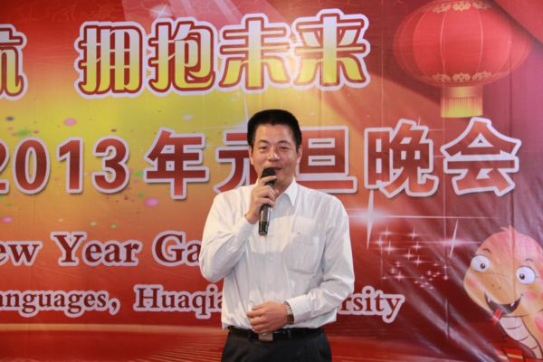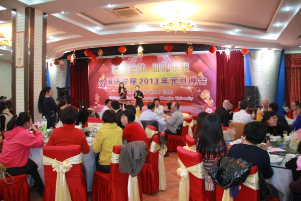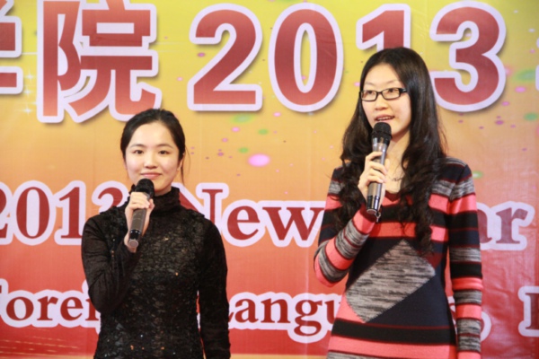 晚会由永利23411集团蒋旭莹和陈嘉静两位老师联袂主持。首先,吴季怀副校长应邀走上舞台,向在座的所有教职员工致以新年的祝福;随后,学院新一届领导班子在黄小萍院长和谢友福书记的带领下走上舞台,纷纷表达了对学院全体教职员工的良好祝愿。在辞旧迎新的致辞中,黄小萍院长一一列举了学院在过去的一年中所获得的各项荣誉,并将获得各类奖项的优秀教师代表请到台上,号召大家向他们学习。紧接着,谢友福书记代表学院领导班子对2012年我院光荣退休的卢清琴老师和即将离任的办公室主任苏彤老师给予高度的评价,对她们为学院所作出的贡献表示衷心感谢。
