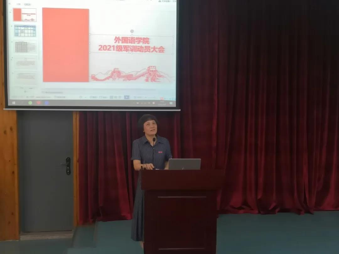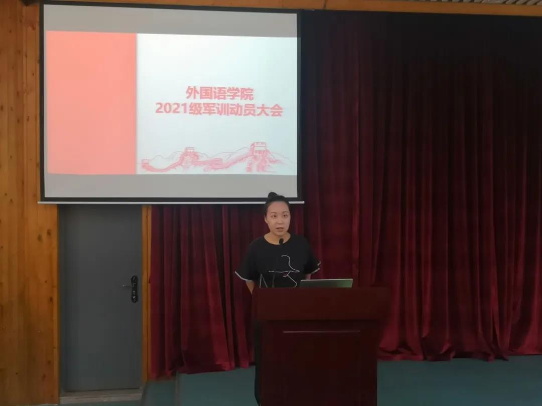 出席本次会议的有外语学院党委书记李璐岚、学院团委书记李守超、学院党委组织员吴倩倩、辅导员马伟光,以及2021级参与军训的全体新生们,会议由辅导员卢宝军主持。
