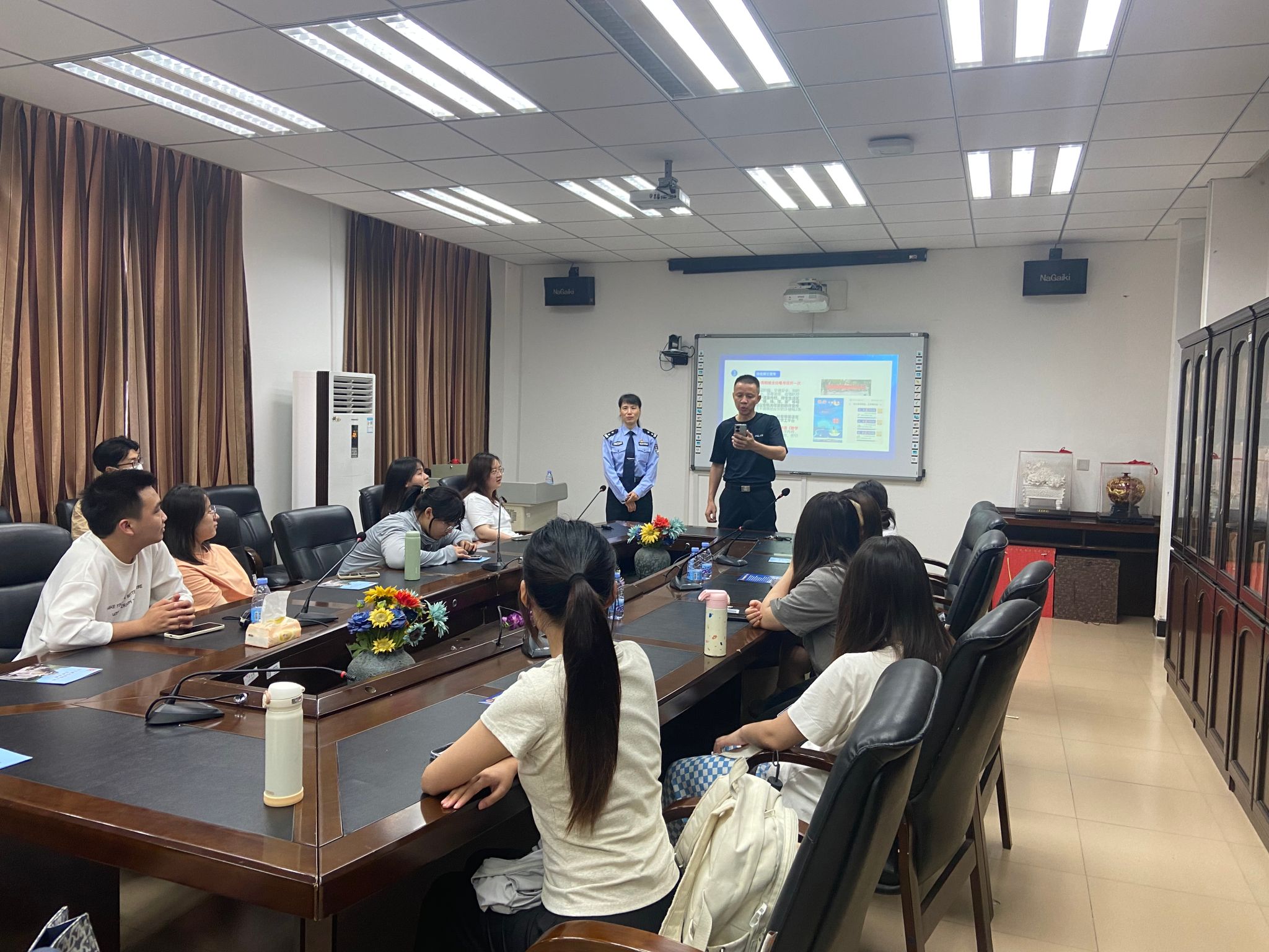吴警官用生动典型的视频案例介绍了电信网络诈骗犯罪常见类型,并从脑科学的角度分析了受害人上当受骗的过程,就男性与女性脑活动的不同之处进一步讲解了针对不同性别的不同诈骗手段。吴警官告诫大家千万不要因为赚钱就入了犯罪团伙的坑,更不要明知故犯、触犯法律。电信诈骗的手段也随着科技发展而进化,现如今AI换脸诈骗案件更是层出不穷,吴警官就几个真实案件的介绍,提醒同学们加强防范,提高反诈意识,并呼吁同学们下载国家反诈中心APP。同时yL23411永利集团派出所陈天成所长也为师生讲解关于防诈骗的相关知识,提醒同学们一定要提高警惕,不要贪图小便宜,不要被别人利用了自己的善良。