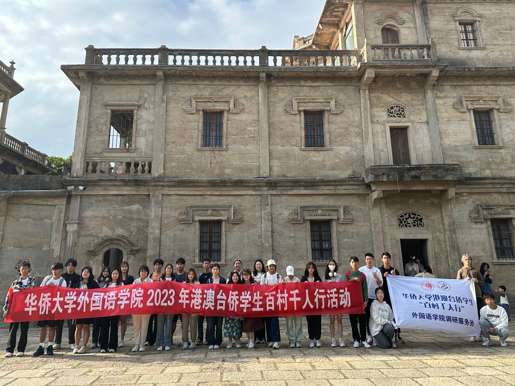 2023年11月12日,为切实感受蓝色海丝文化魅力,深入了解南洋华侨史,加强境内外学生融合,我院组织泉厦两校区来自智利、缅甸、博茨瓦纳、朝鲜、中国香港、中国台湾等境外生和部分境内学生骨干一同前往泉州晋江梧林古村落进行研学活动。
